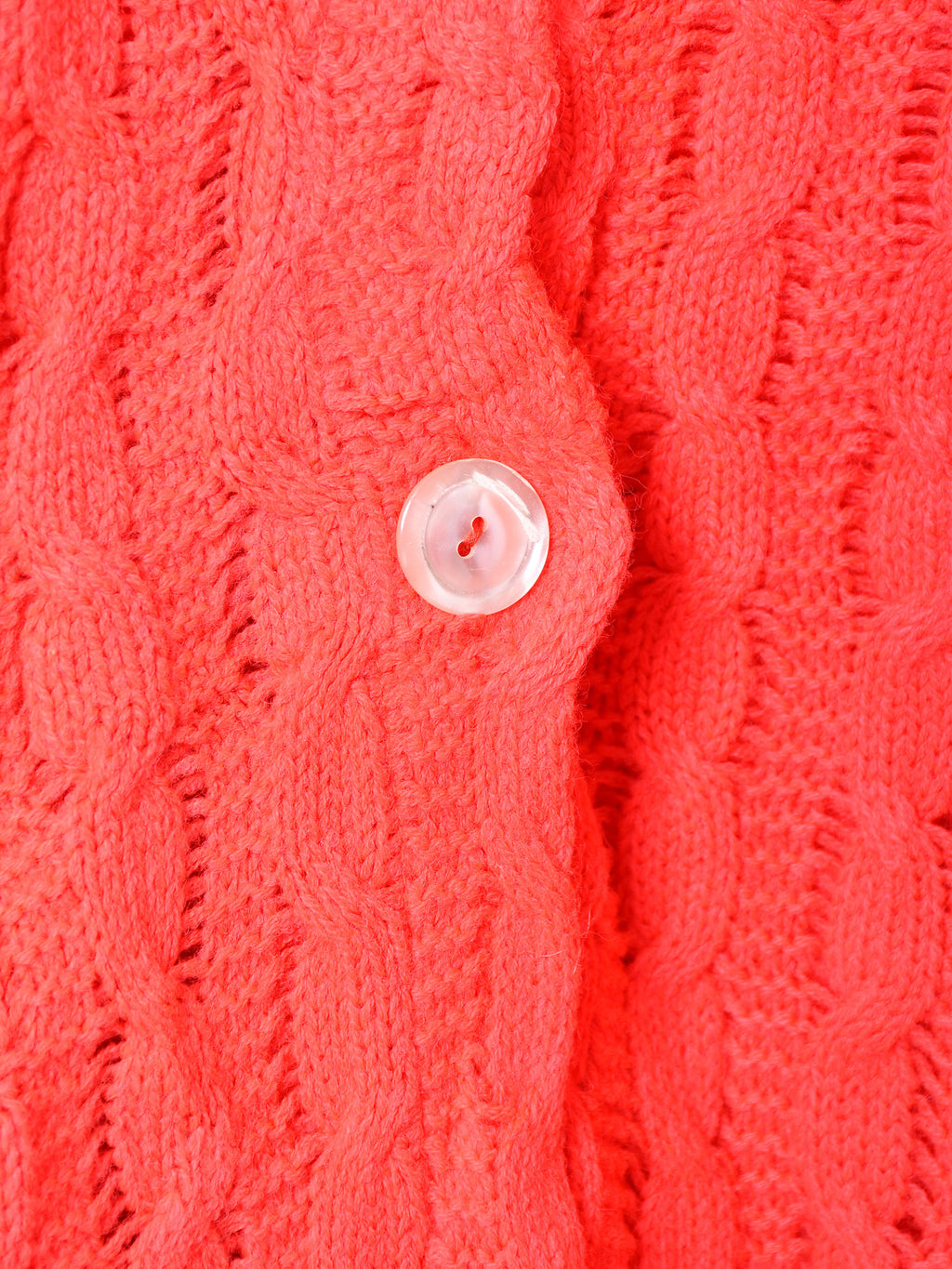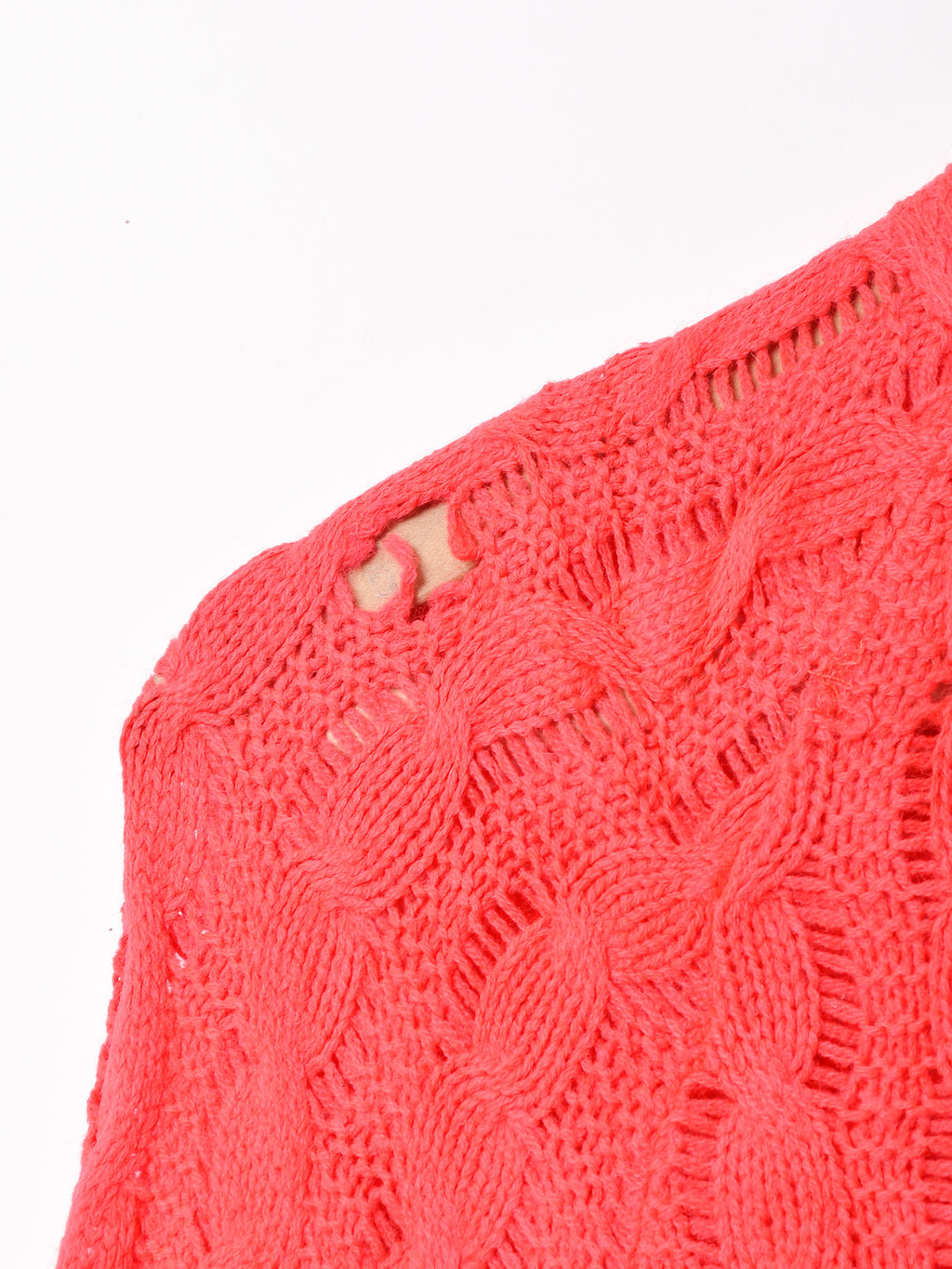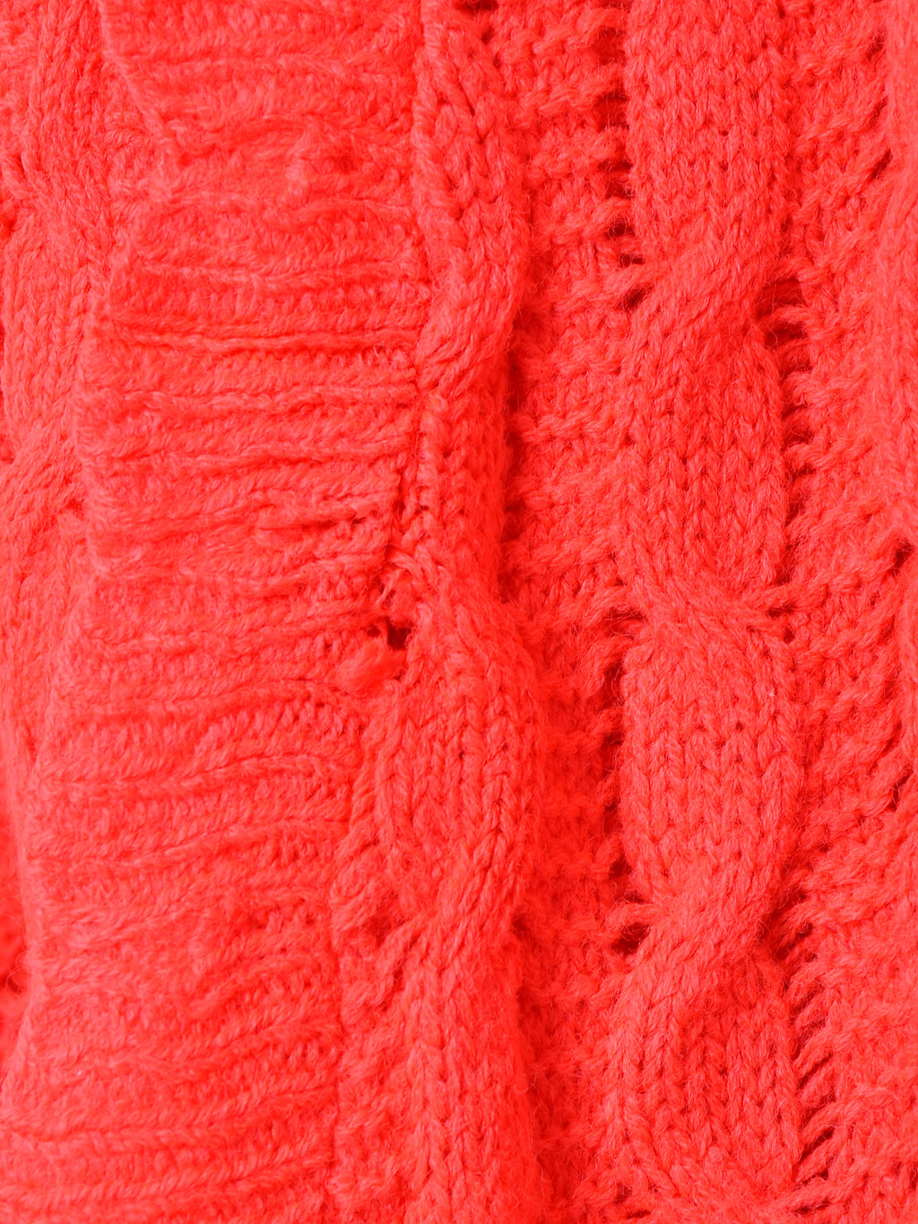 ビビットな色合いが、コーディネートの主役になるニットポンチョ。おそらくアクリル素材の軽い生地感で、長いシーズン着られる一着です。