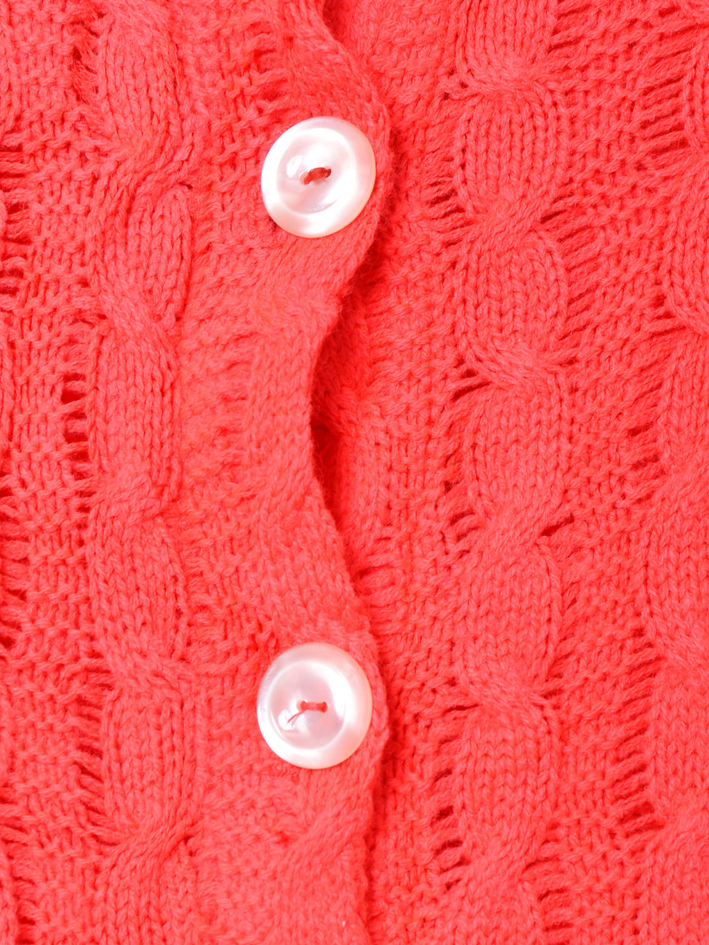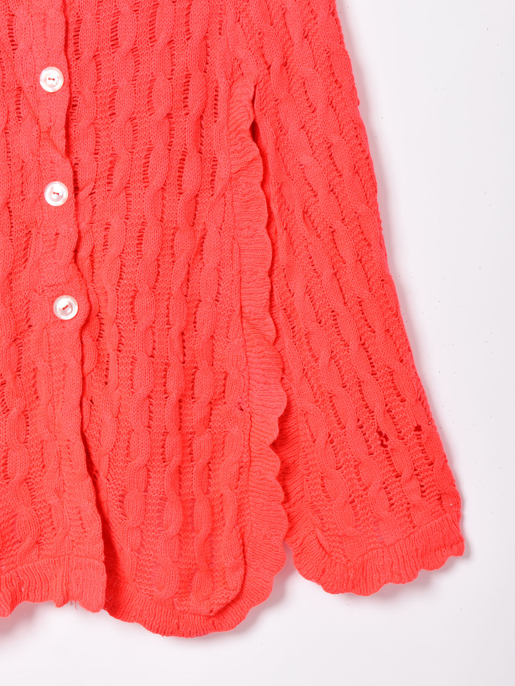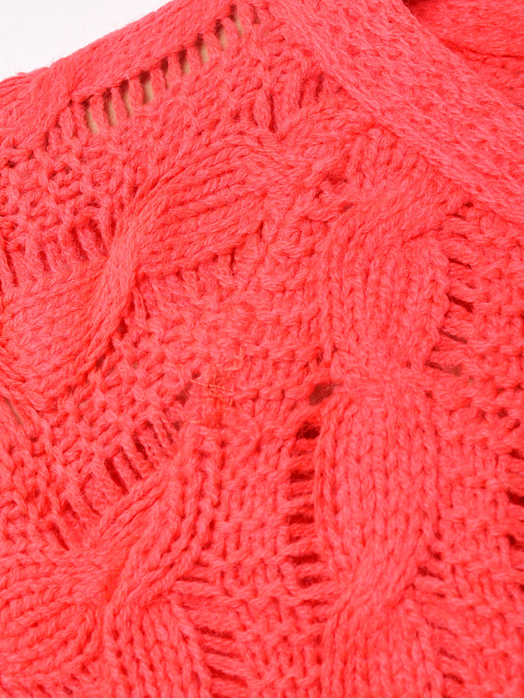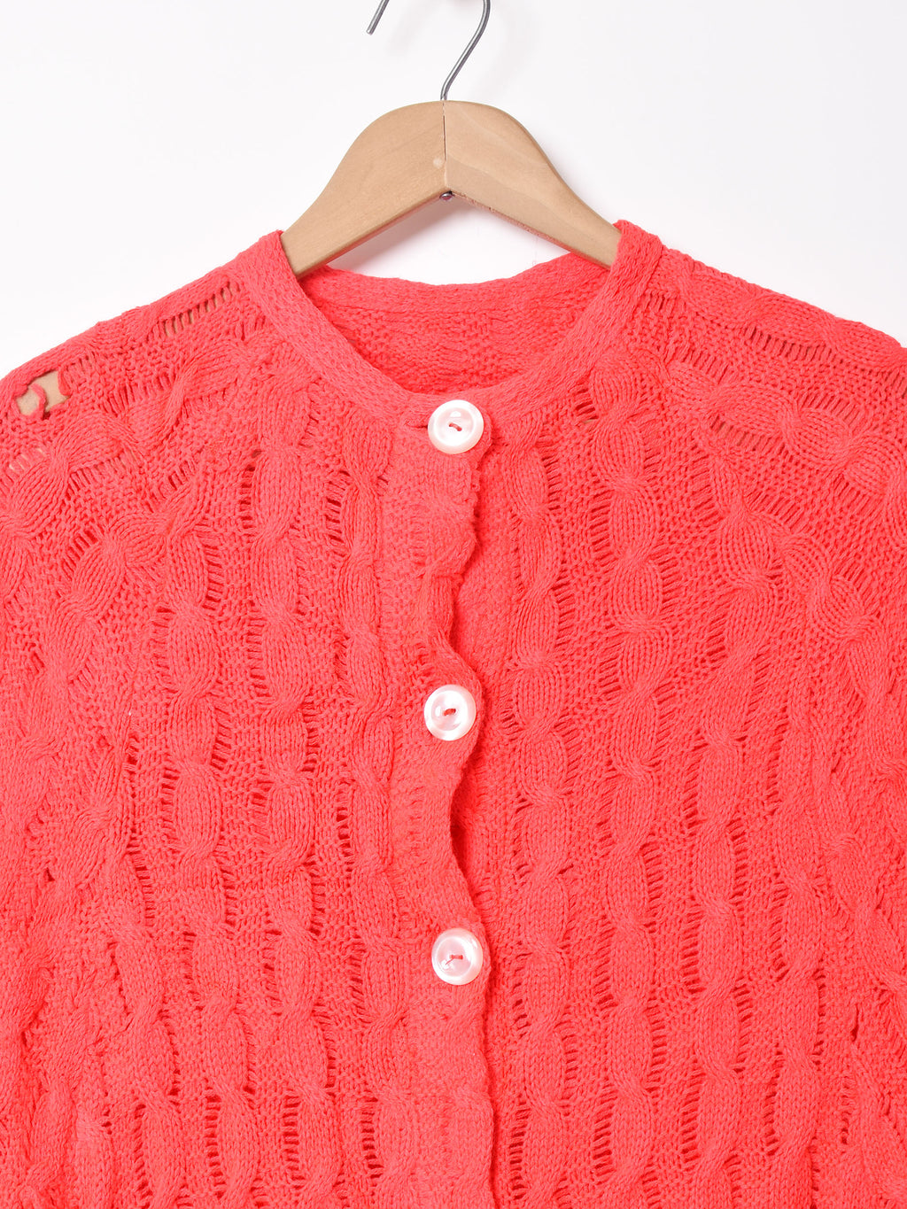 ビビットな色合いが、コーディネートの主役になるニットポンチョ。おそらくアクリル素材の軽い生地感で、長いシーズン着られる一着です。