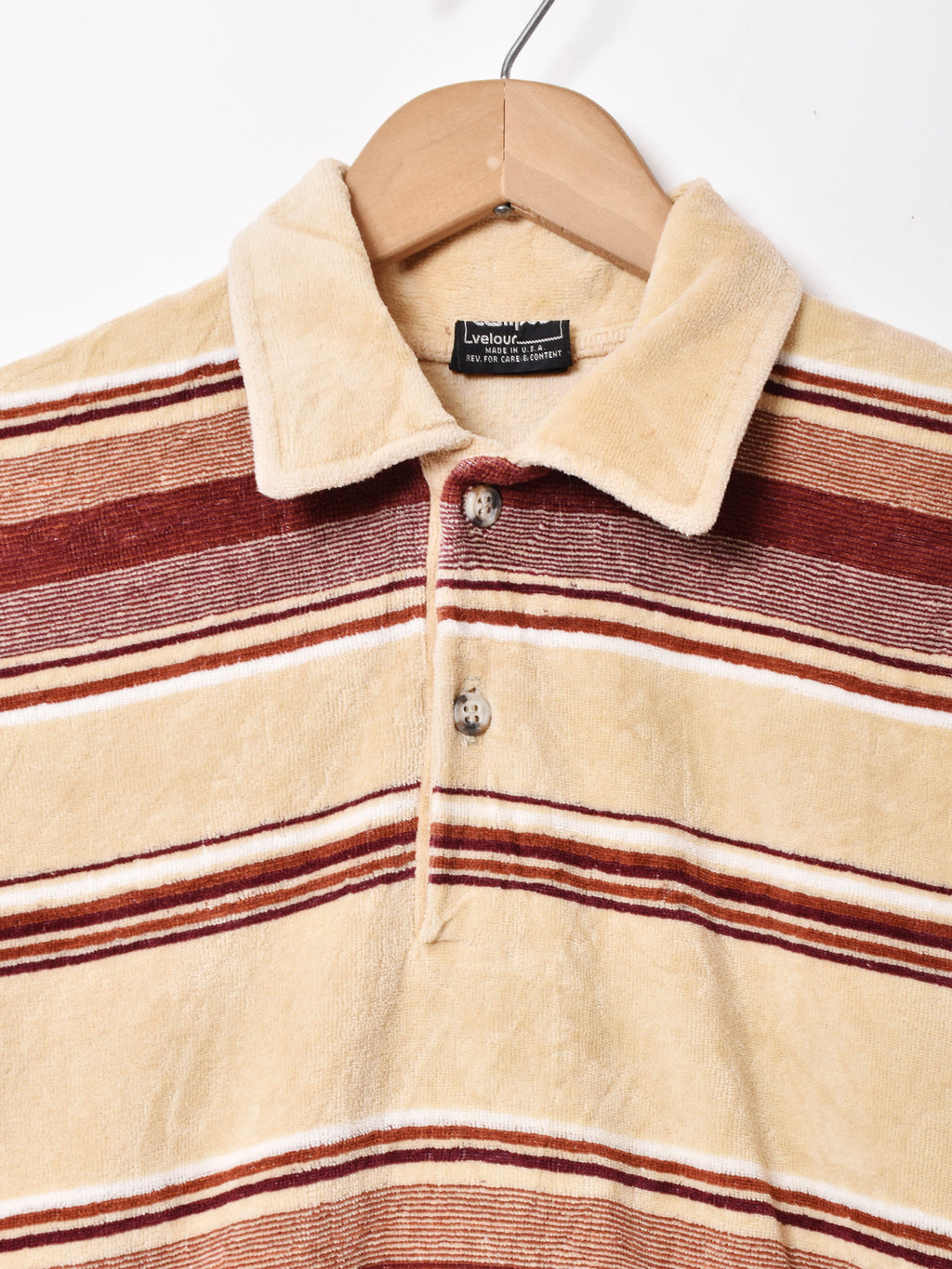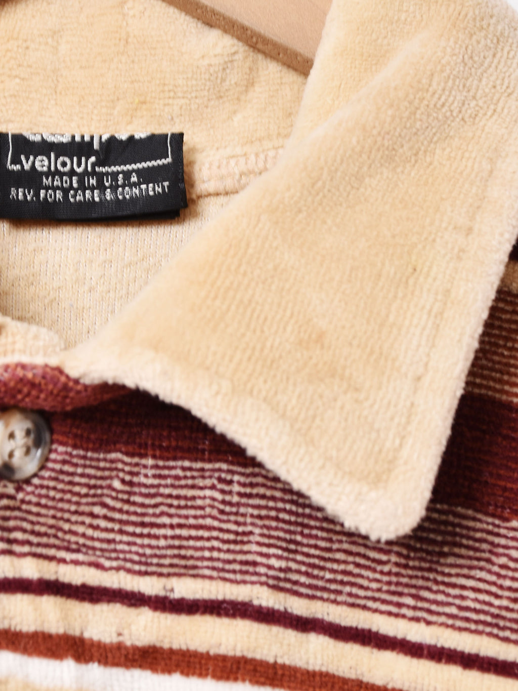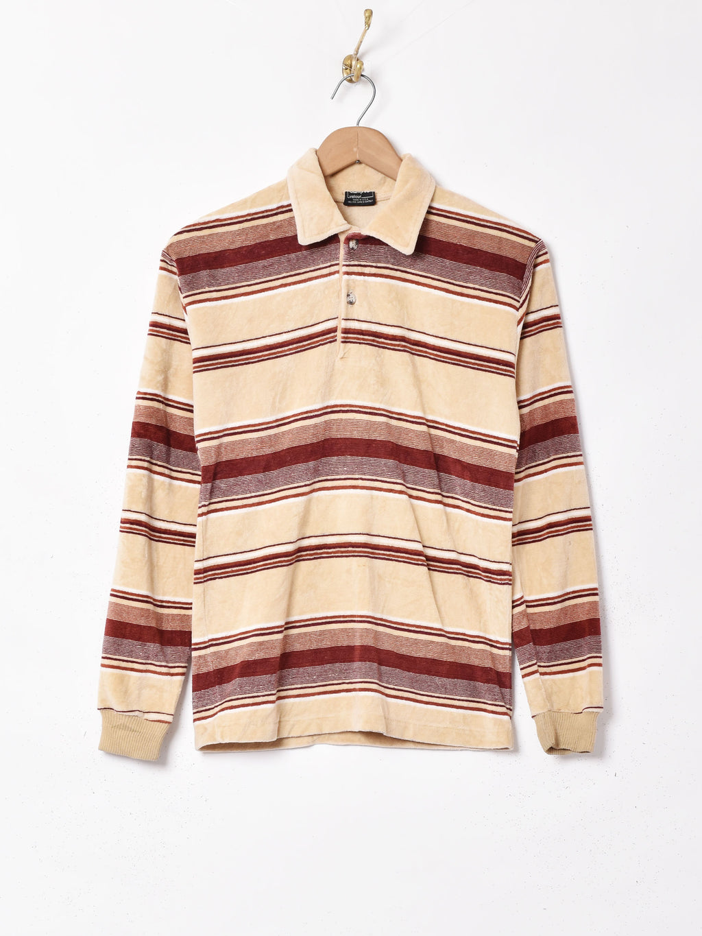 アメリカ製 ボーダ— 襟付きベロアトップス