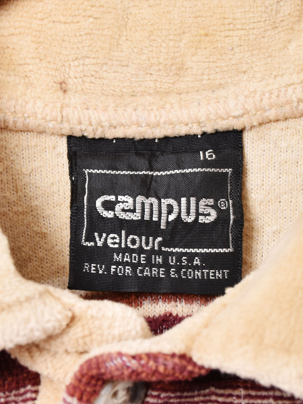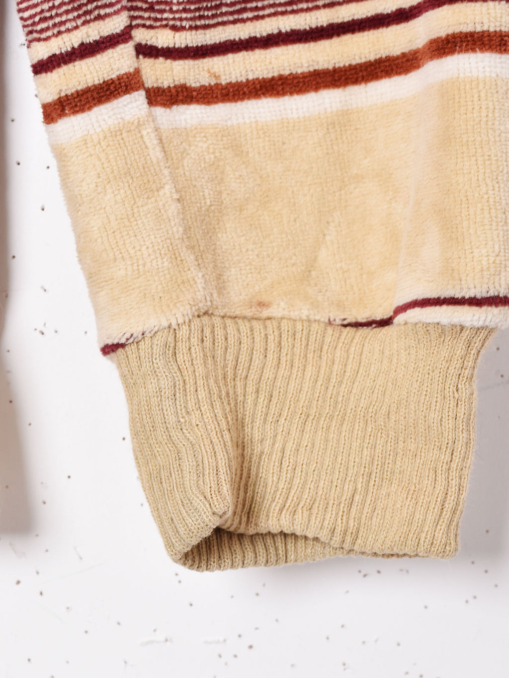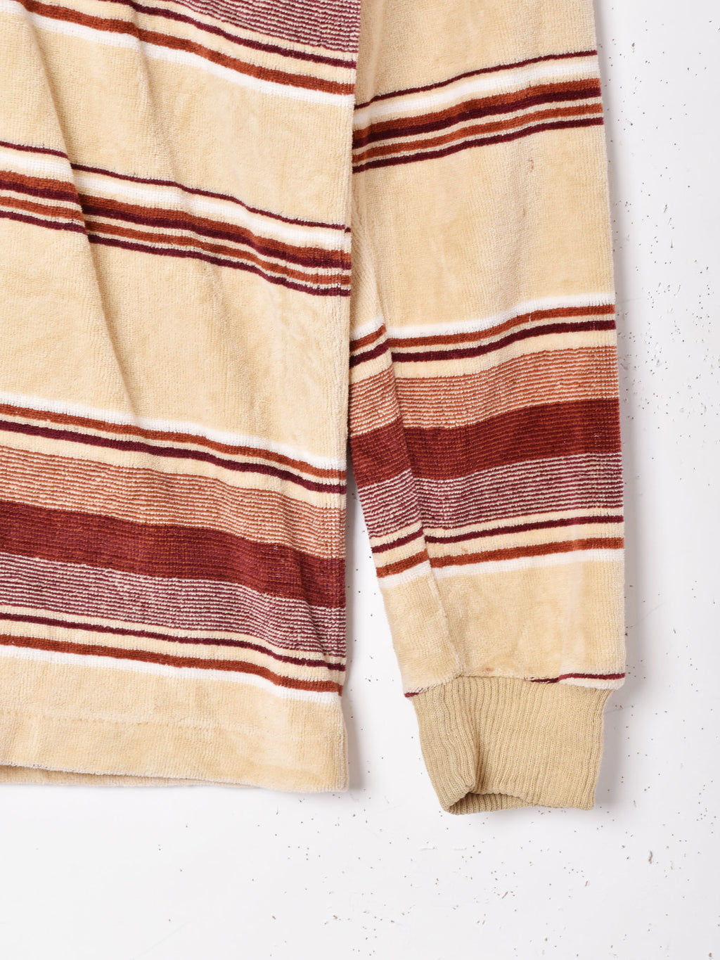 ベージュベースにブラウンのボーダーが映える一枚。程よい厚みのベロア生地です。