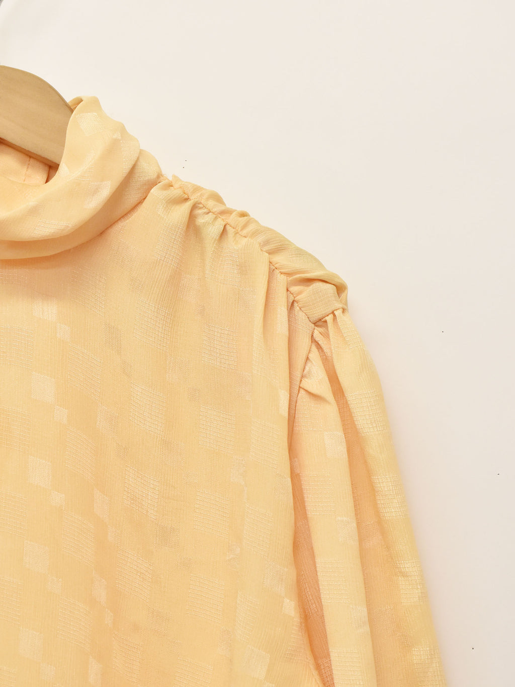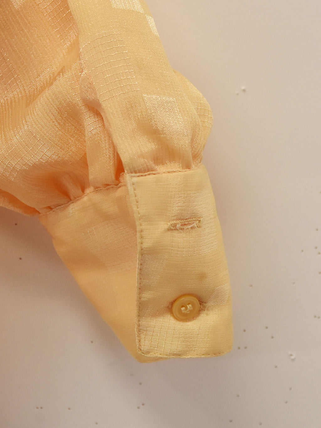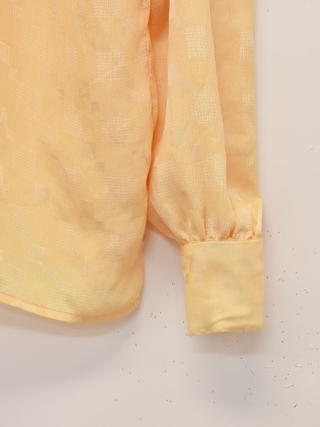 ボディカラーと同色の織り柄がポイントの長袖シャツ。薄手のポリエステル生地で、さらりと軽やかな一着です。