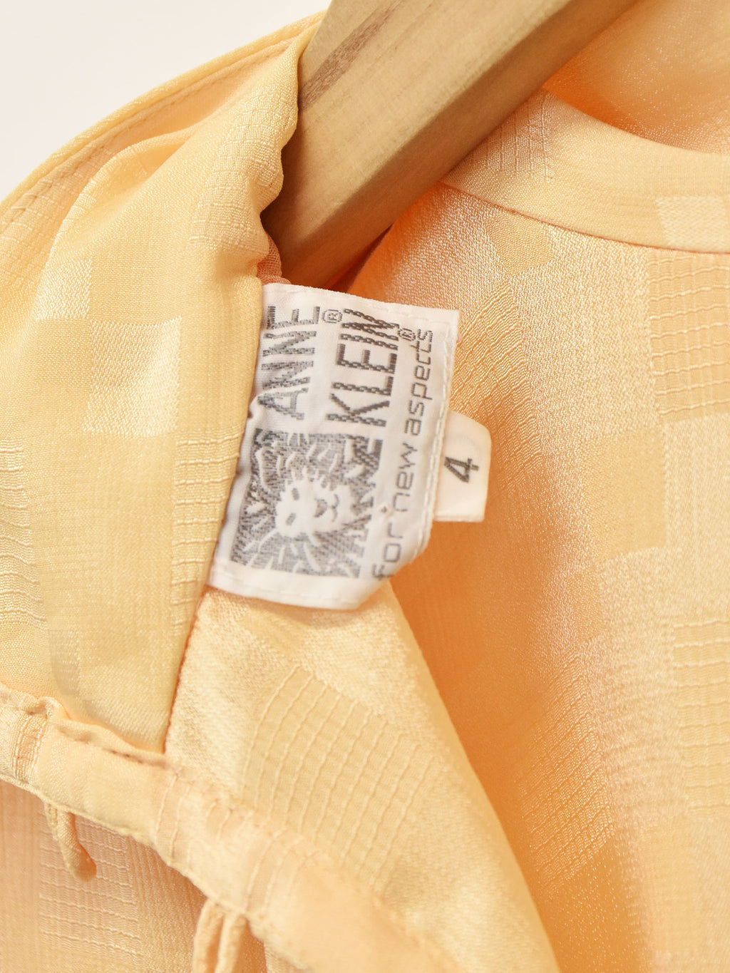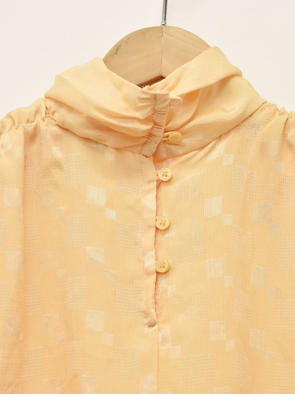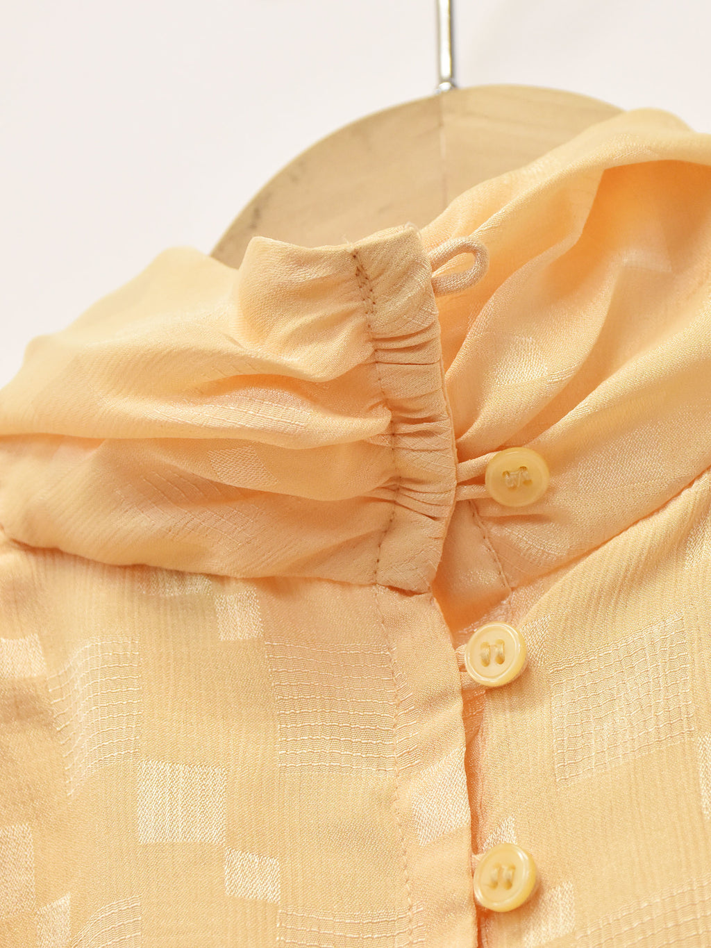 ボディカラーと同色の織り柄がポイントの長袖シャツ。薄手のポリエステル生地で、さらりと軽やかな一着です。