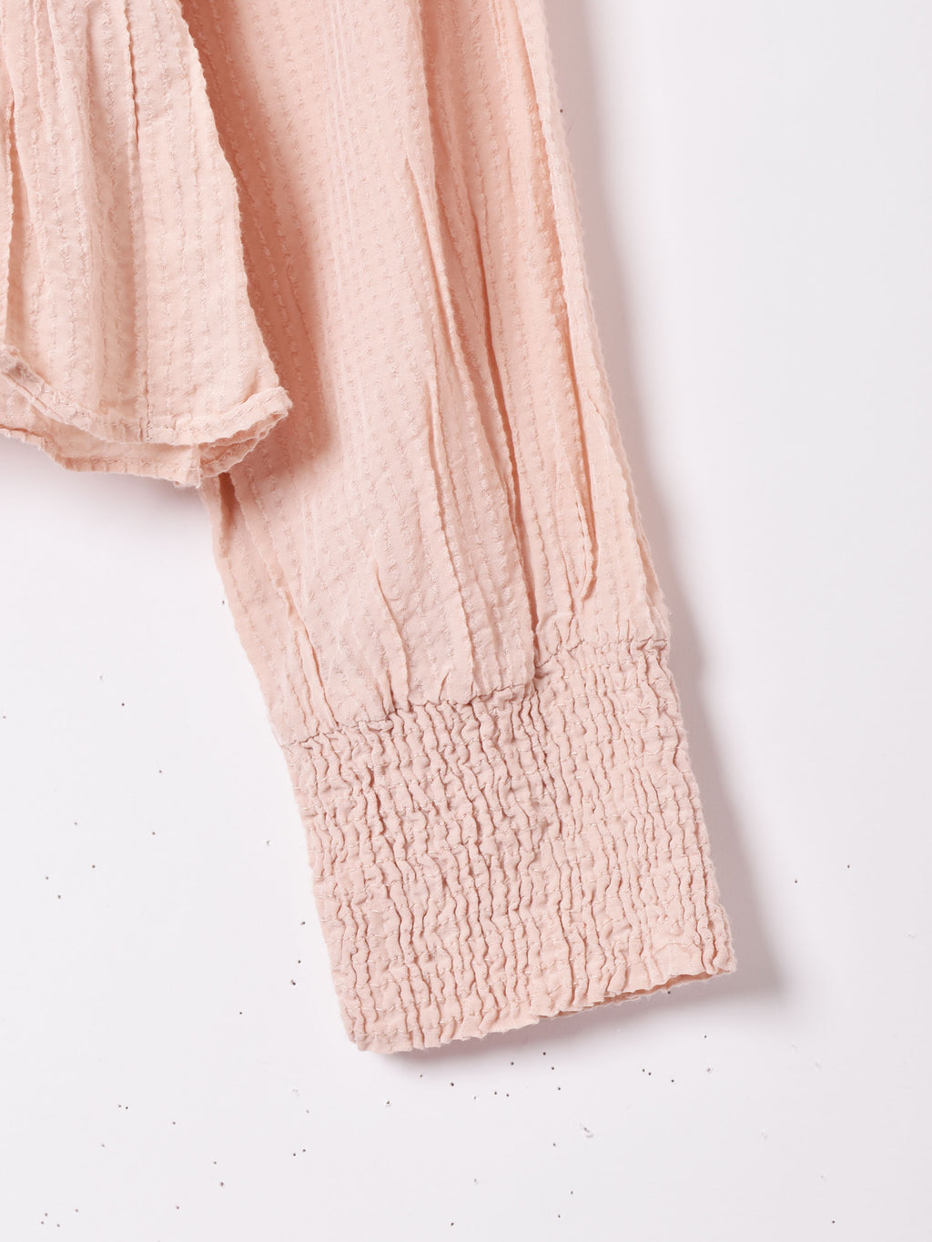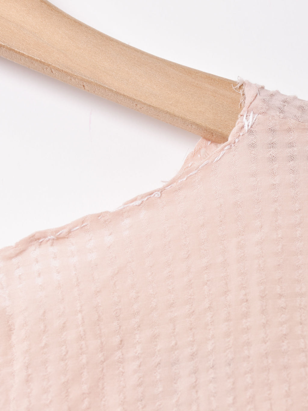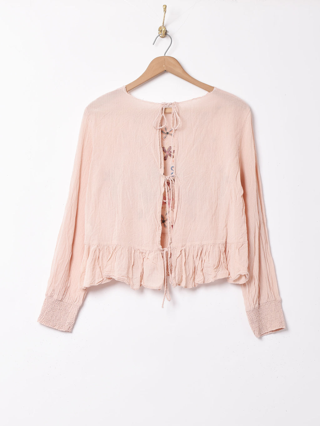 フロントの刺繍が華やかでバックスタイルも気を抜かない一枚。やや透け感のある薄手生地です。