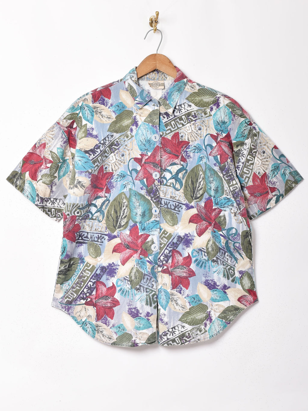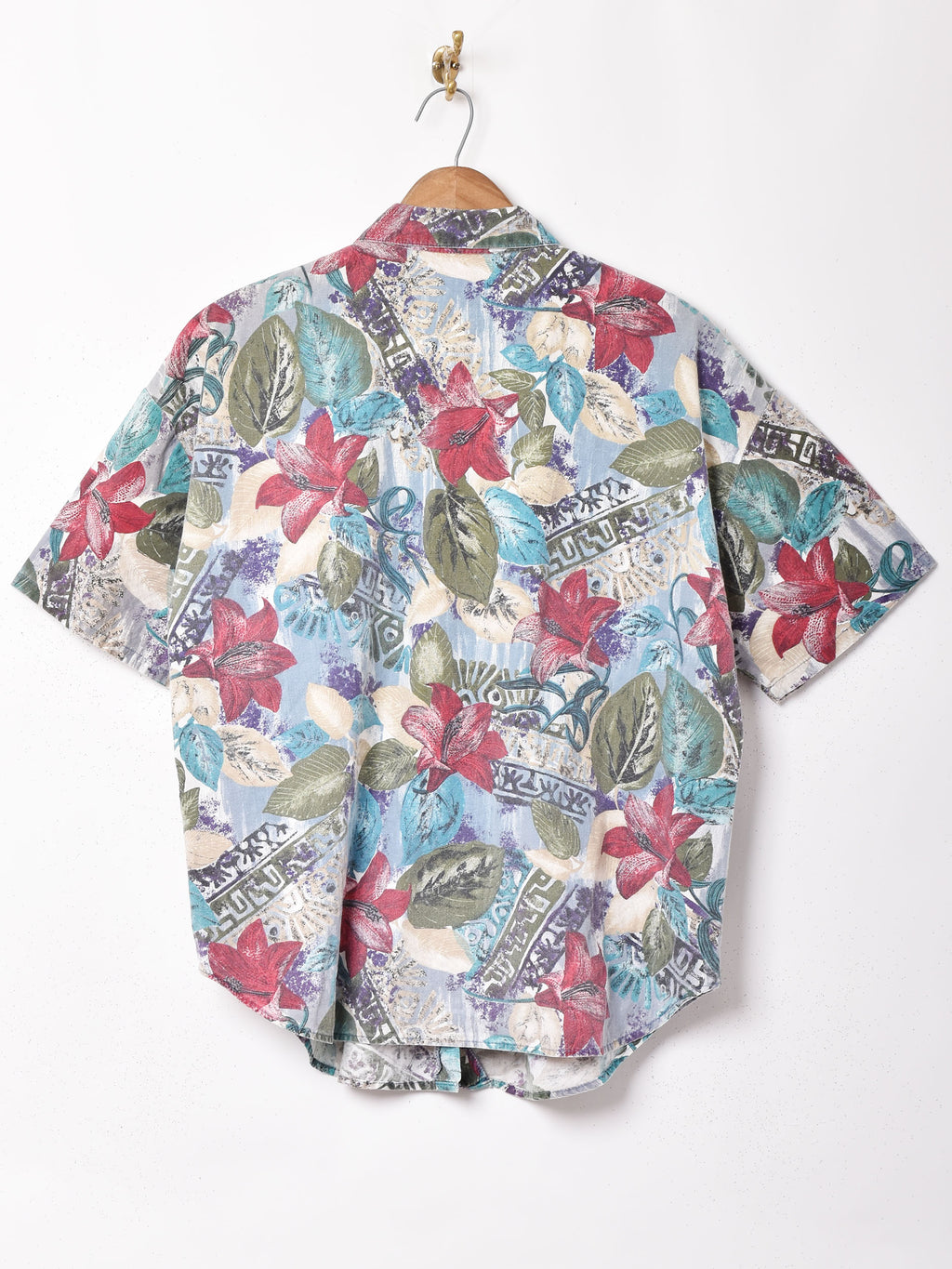 かすれた総柄がムード満点な半袖シャツ。柔らかく肌触りのよいオールコットン生地です。