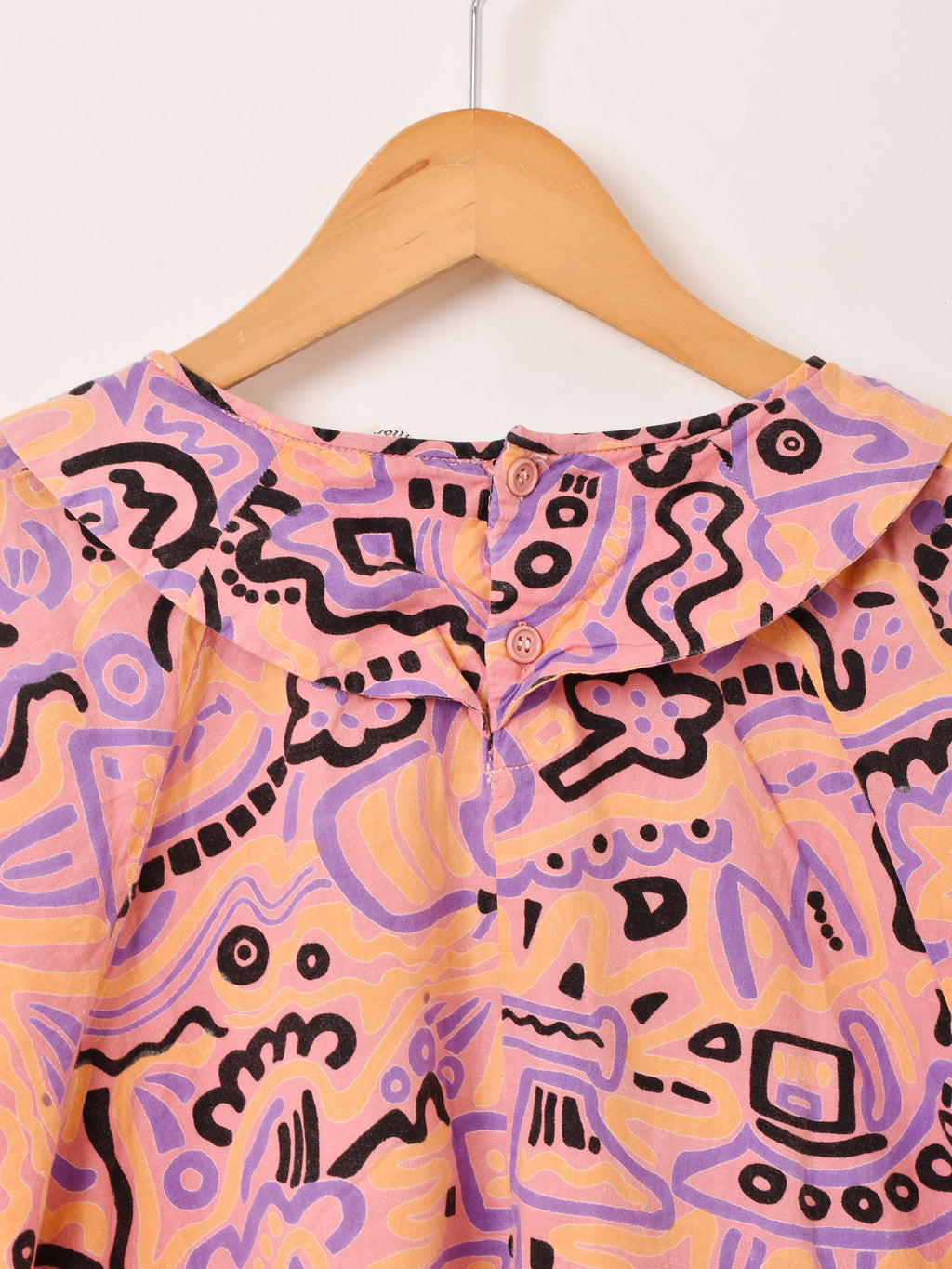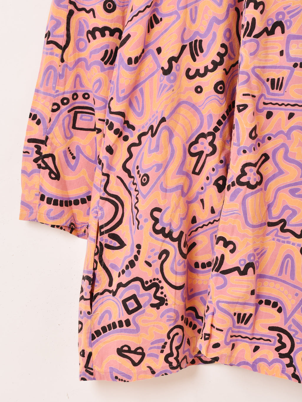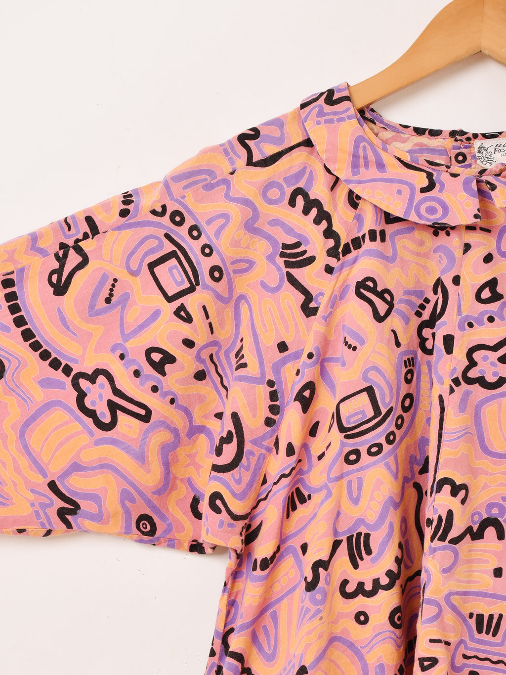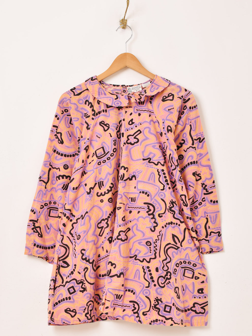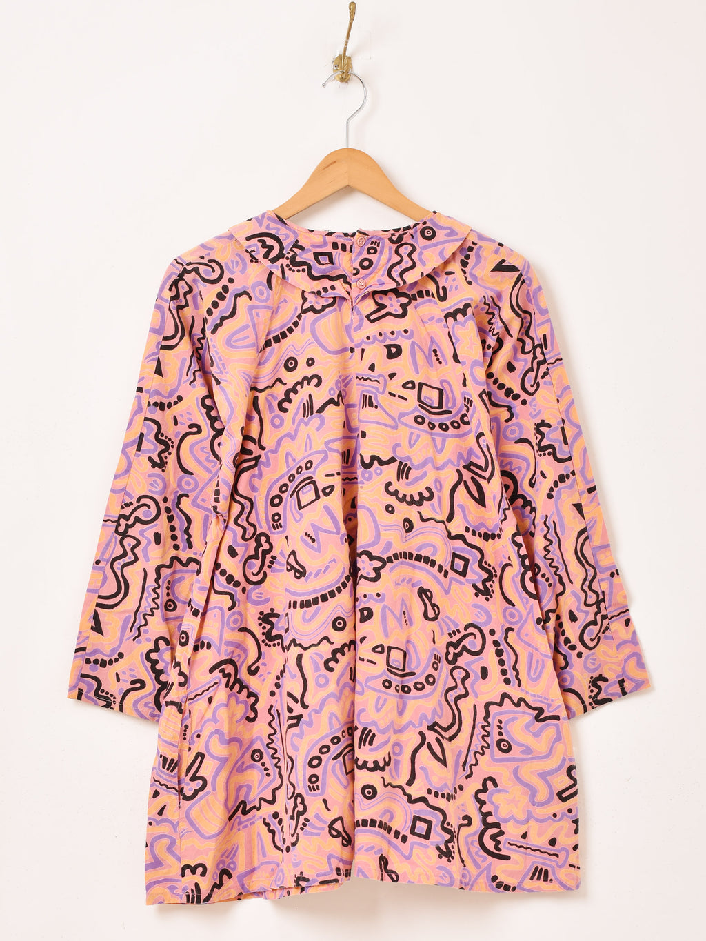 ポップなデザインが目を惹く、プルオーバータイプの長袖トップス。着丈が長いので、ミニワンピース感覚でも着こなせます。インド綿で仕立てた一着です。