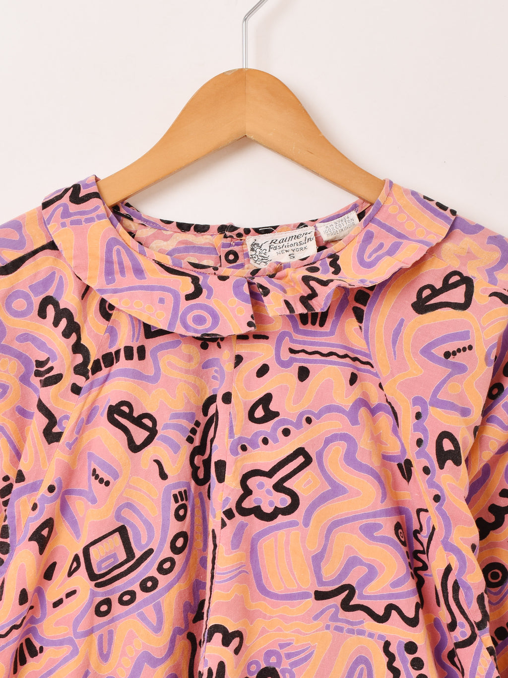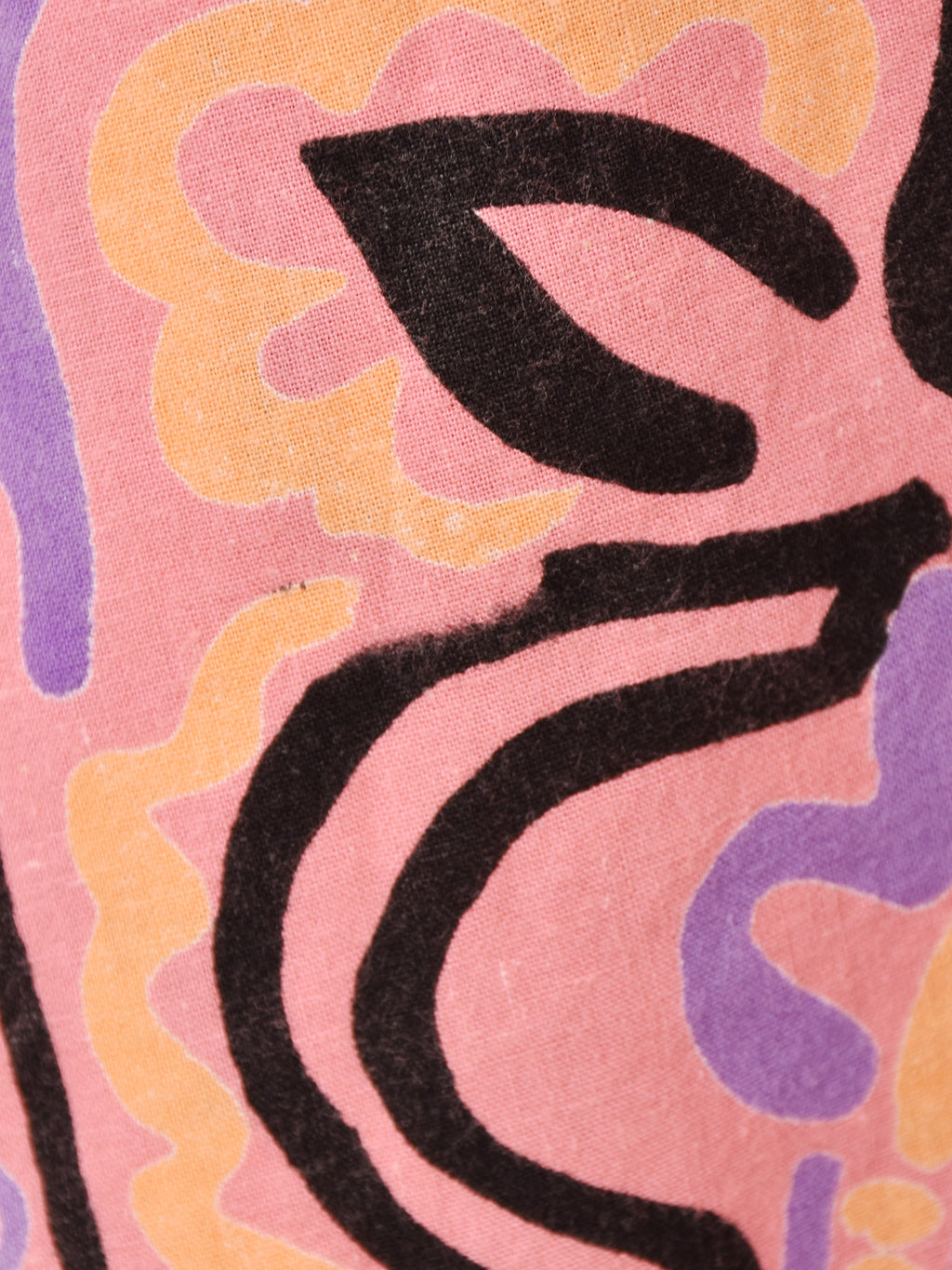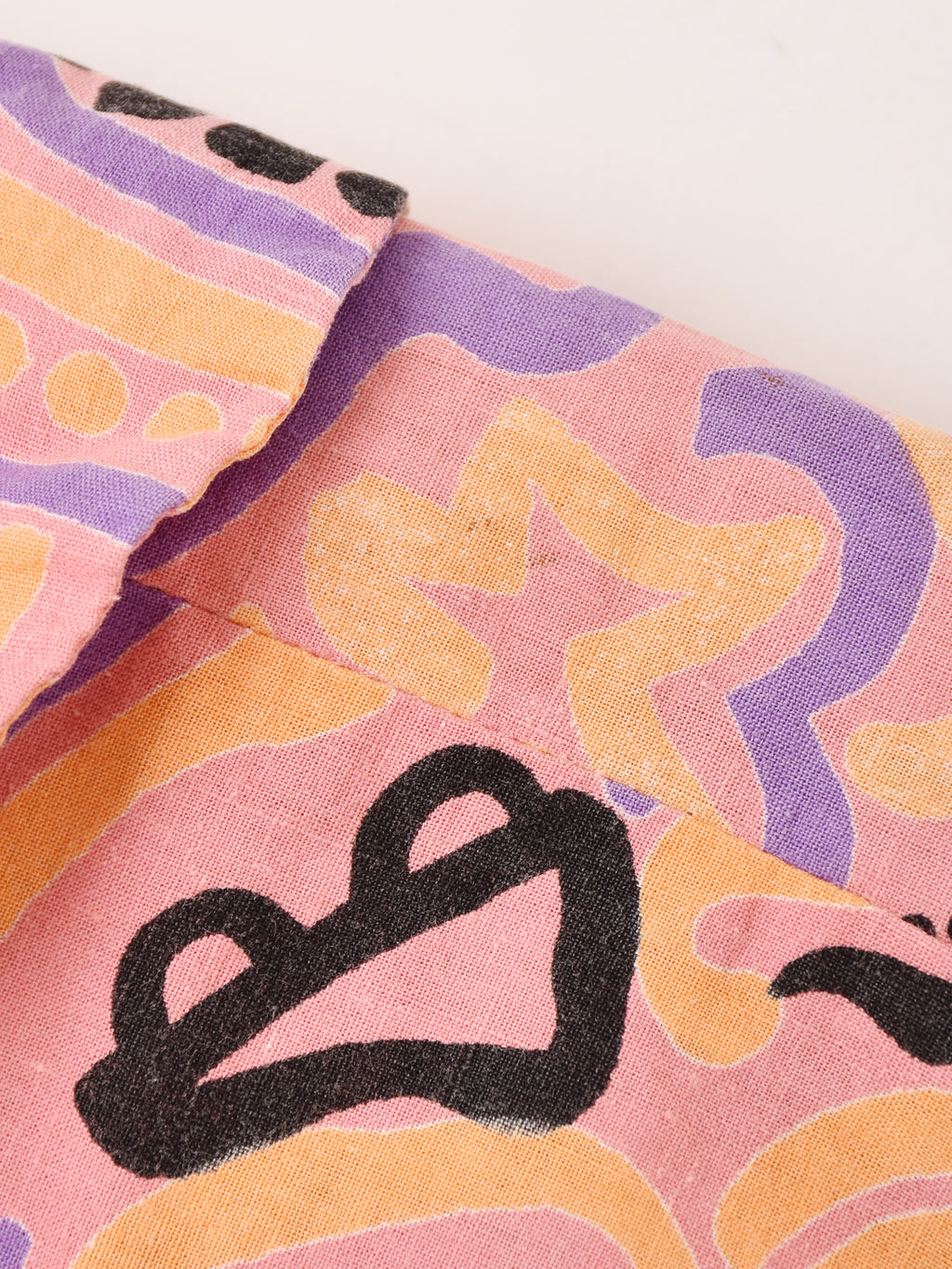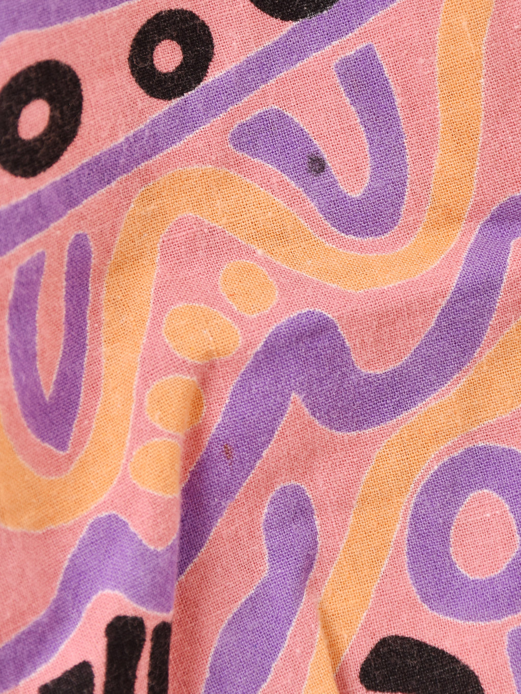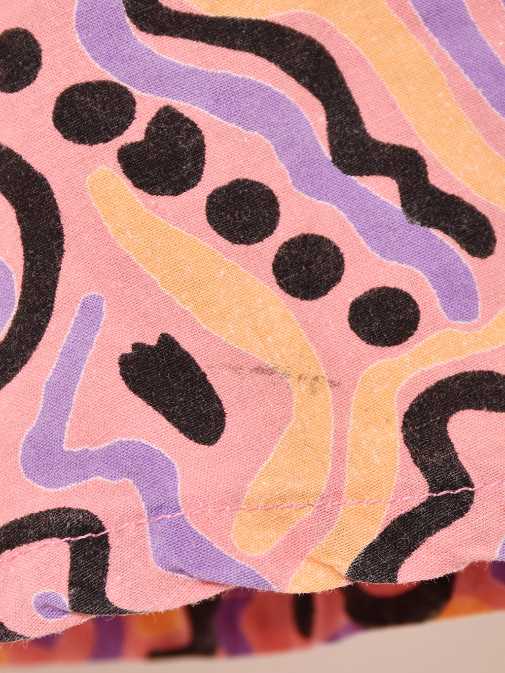 ポップなデザインが目を惹く、プルオーバータイプの長袖トップス。着丈が長いので、ミニワンピース感覚でも着こなせます。インド綿で仕立てた一着です。