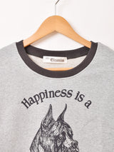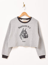 カジュアルなプリントが目を惹くスウェットシャツ。切りっぱなしのクロップド丈で脚長効果が期待できそうな一着です。