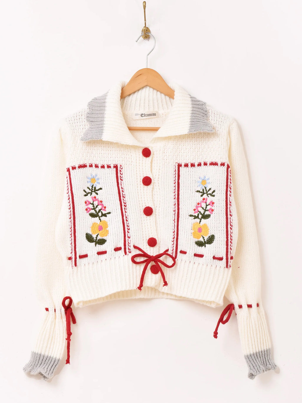 【3色展開】Elcamino フラワー刺繍 襟付き チロル風カーディガン