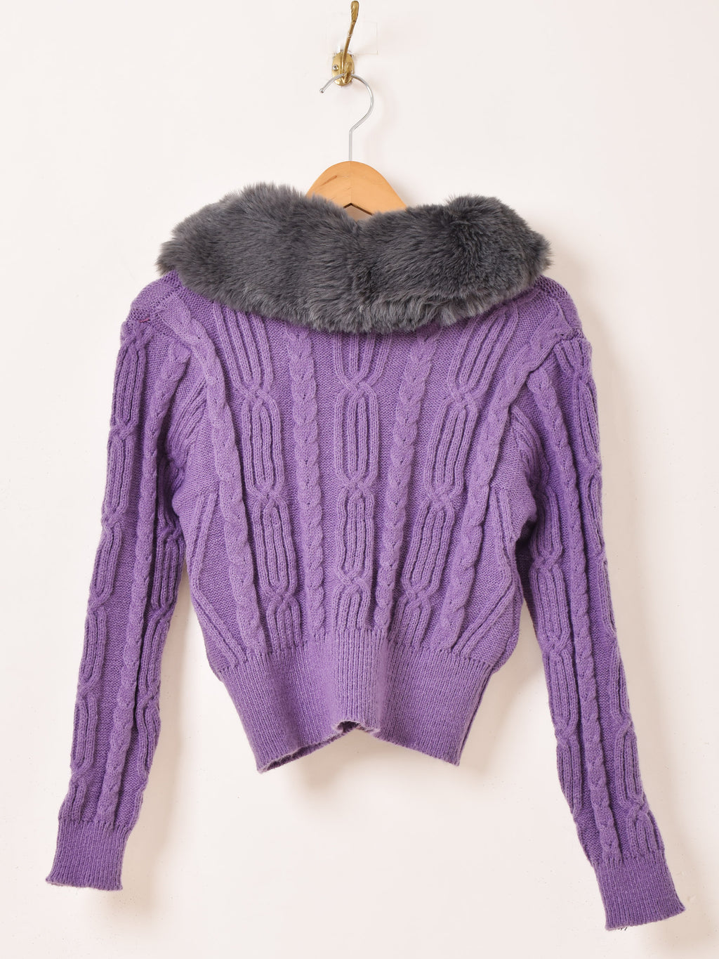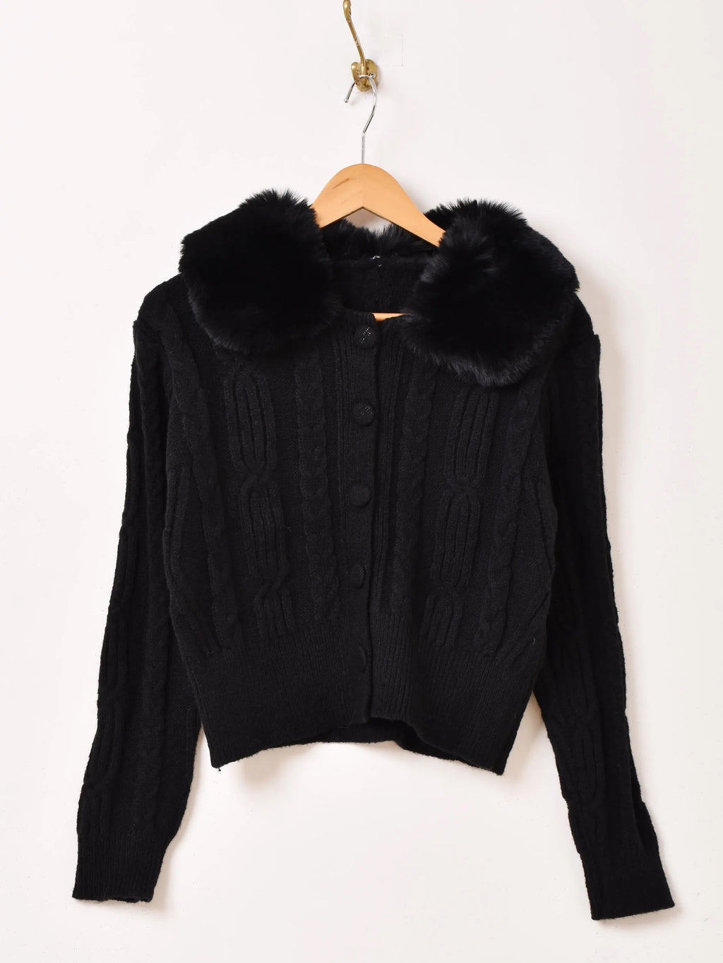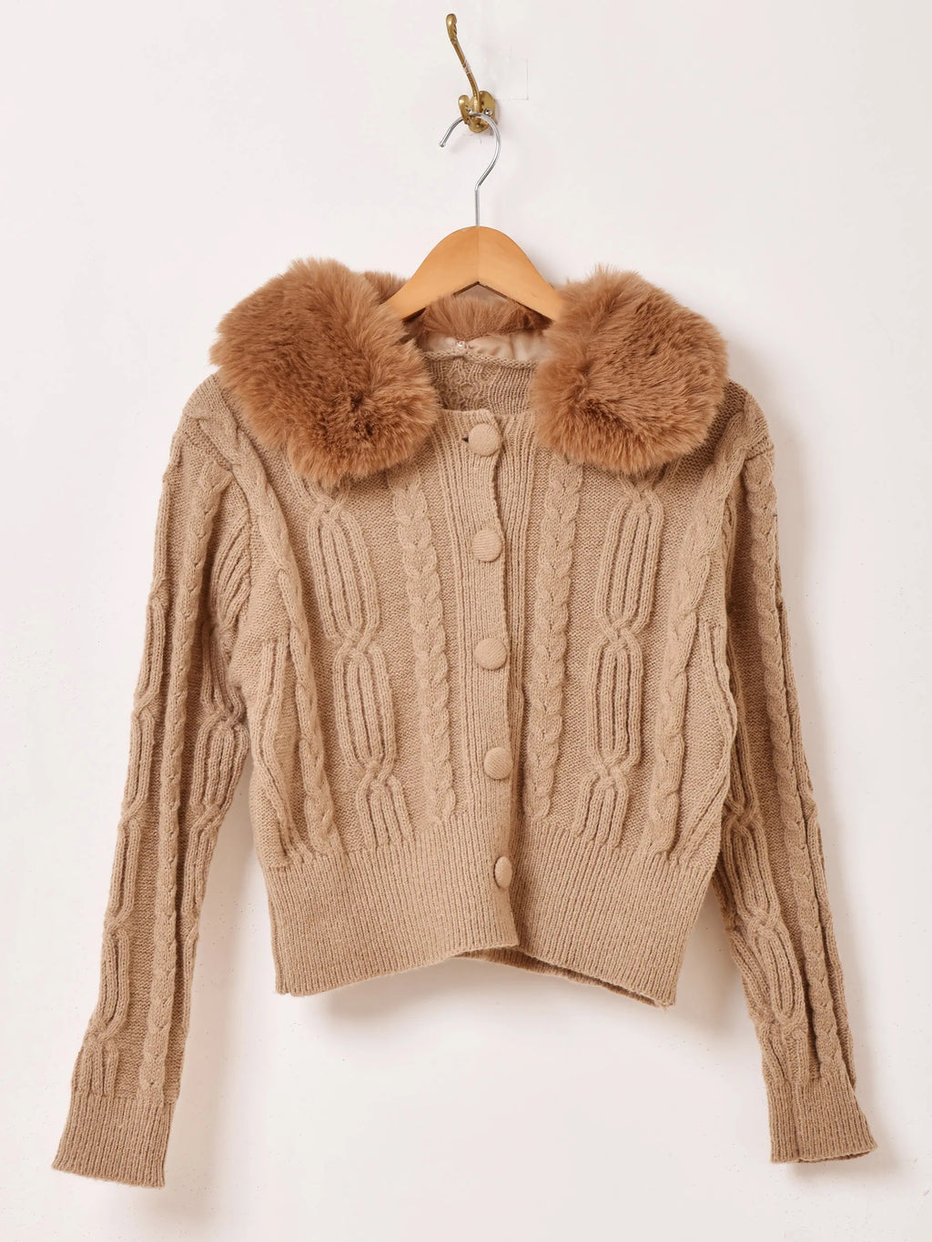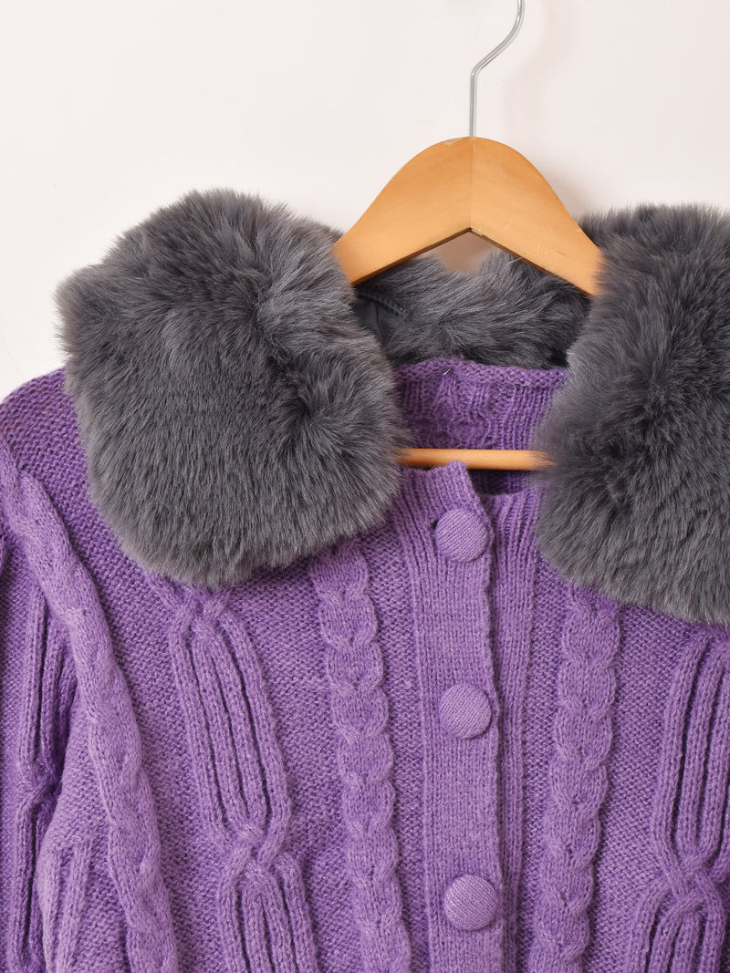 取り外し可能なフェイクファーの襟が付いたカーディガン。ファー有りと無しで、それぞれ違った着こなしができる一着です。ショート丈に細身のシルエットも、トレンド感があって嬉しいポイントです。