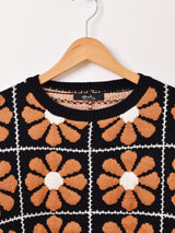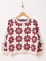 大ぶりのお花モチーフが可愛らしいセーター。ぷくっと、ほんのり立体編みになっているところがポイント。厚みがあり、程よく弾力性のあるアクリルニット生地です。
