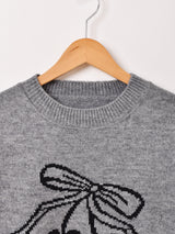 フロントにさくらんぼのモチーフがデザインされたセーター。目の詰まった、程よい厚みのアクリルニット生地です。