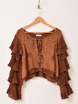 【2色展開】Emerald Motel エスニック刺繍 ラッフル 長袖ブラウス