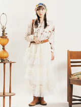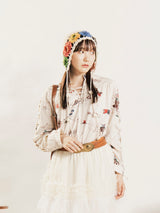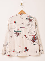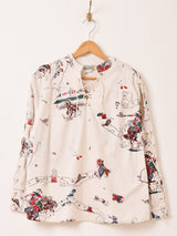 カウボーイやテンガロンハットなど、ウエスタンモチーフの柄が目を惹くプルオーバーシャツ。襟と袖はレースアップになっており、どこかヴィンテージ感漂うデザインが魅力的です。チュニックのようなシルエットで、程よくフェミニンな雰囲気も◎。