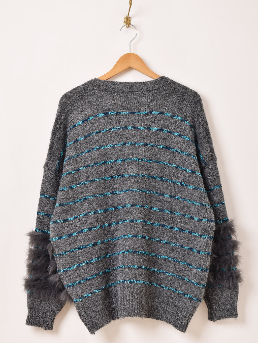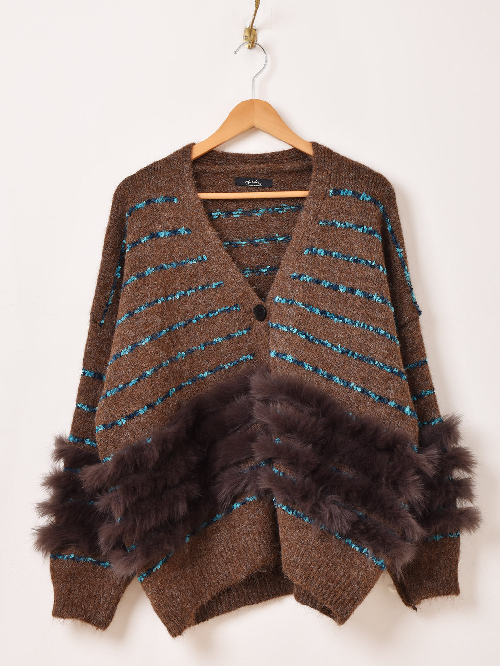 【2色展開】Meridian ラインデザイン ファー カーディガン