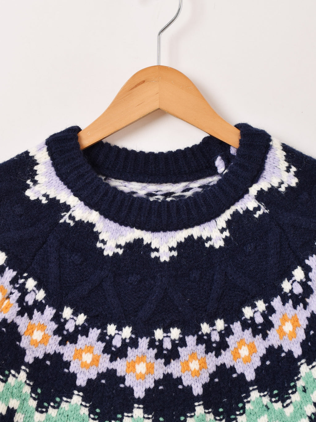 ノルディック風のパターンが目を惹くセーター。程よい厚みのニット生地で、シーズンムードたっぷりの一着です。