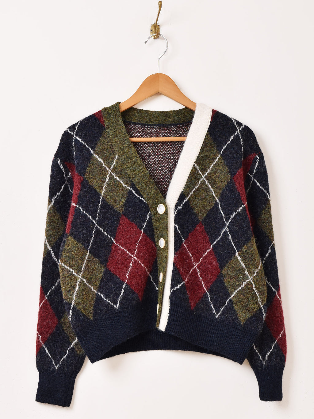 【2色展開】Meridian アーガイルチェック柄 カーディガン
