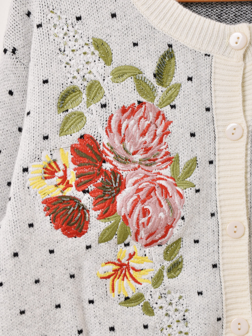 【2色展開】Meridian フラワー ビーズ刺繍 カーディガン
