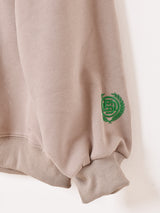 カレッジ風の刺繍が目を惹くスウェット。袖にもワンポイント刺繍があります。さらっとした、ポリエステル生地で仕立てられた一着です。