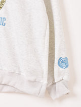 カレッジ風の刺繍が目を惹くスウェット。袖にもワンポイント刺繍があります。さらっとした、ポリエステル生地で仕立てられた一着です。