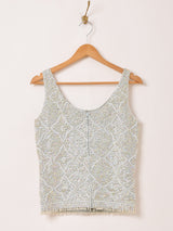 オーロラのスパンコールとビーズ刺繍がずっしりとあしらわれたニットタンクトップ。背中のジッパーはピンロック式(片爪)なので、おそらく50~60年代頃のものと思われます。