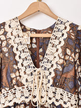70's GUNNESAX バティックプリント 長袖ロングドレス