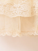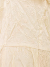 柔らかなアイボリーのチュールやレース生地が数種類組み合わされた贅沢な一着。