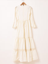 ナチュラルな生成りの風合いが魅力的なガニーサックスのロングドレス。