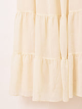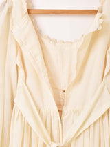 アイボリーのワントーンでシンプルなデザインですが、フロントにあしらわれたレースやウエストのレースアップ、バルーンスリーブなどディテールにガニーサックスらしいガーリーさが◎。