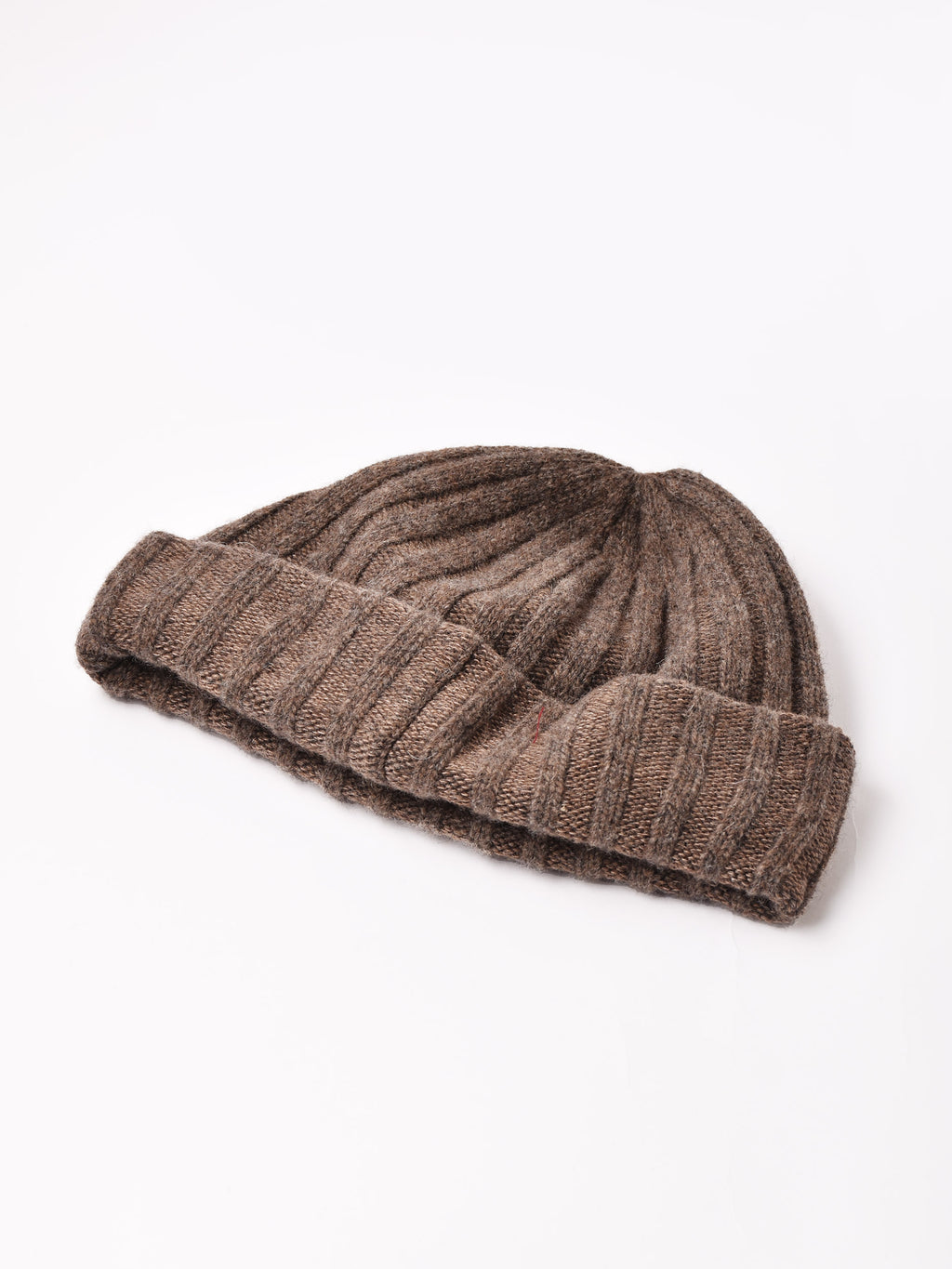 形状記憶タイプのローニットキャップ。ウール混で温もり溢れる一点です。
