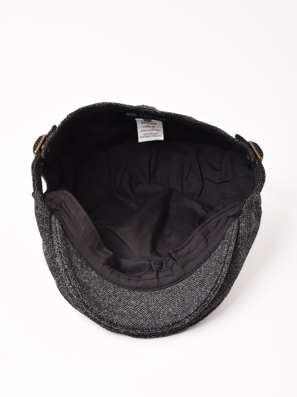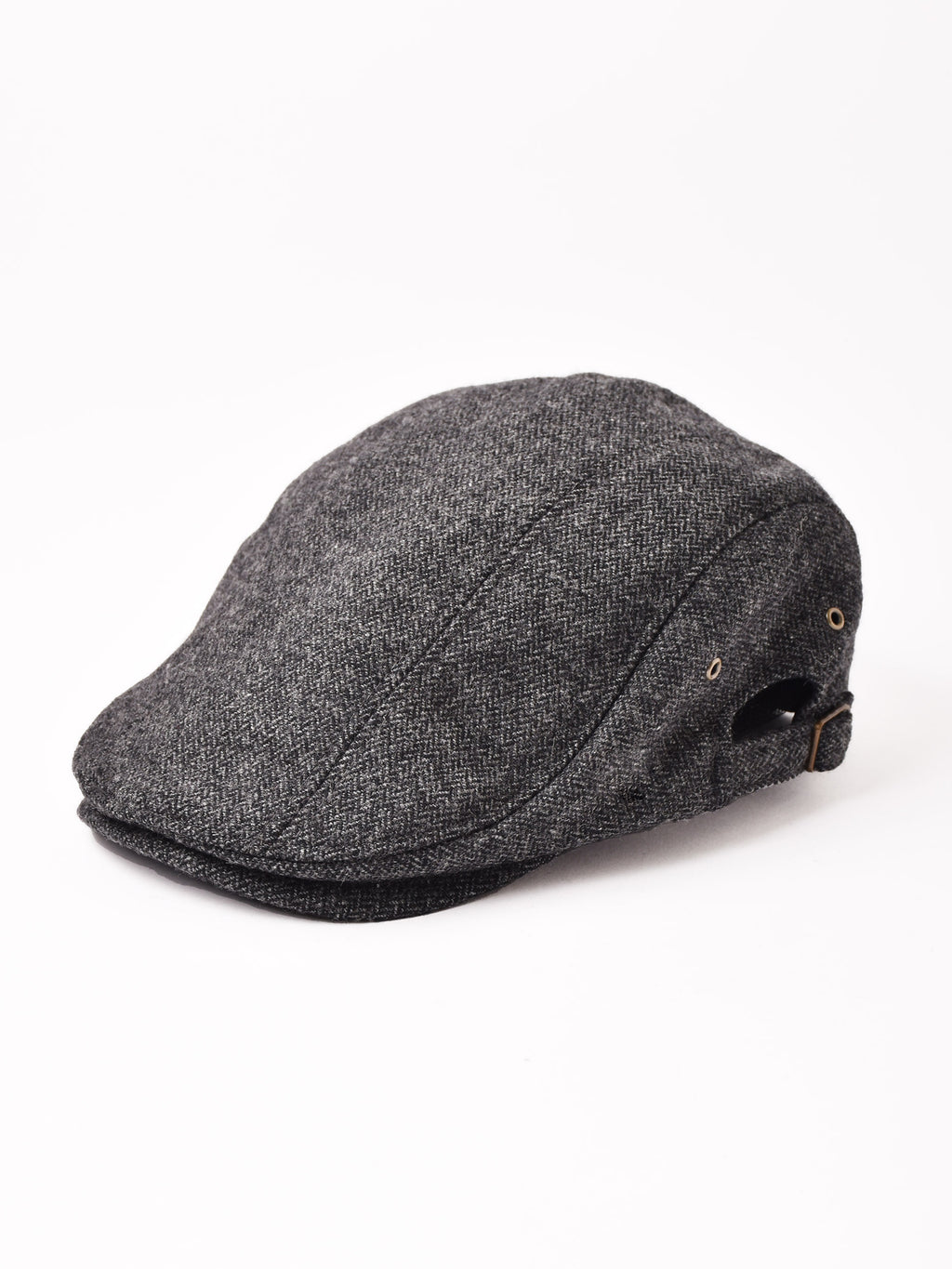 シンプルなヘリンボーン織りのハンチング帽。秋冬らしいウール混生地で、コーディネートにも馴染みやすい一点です。