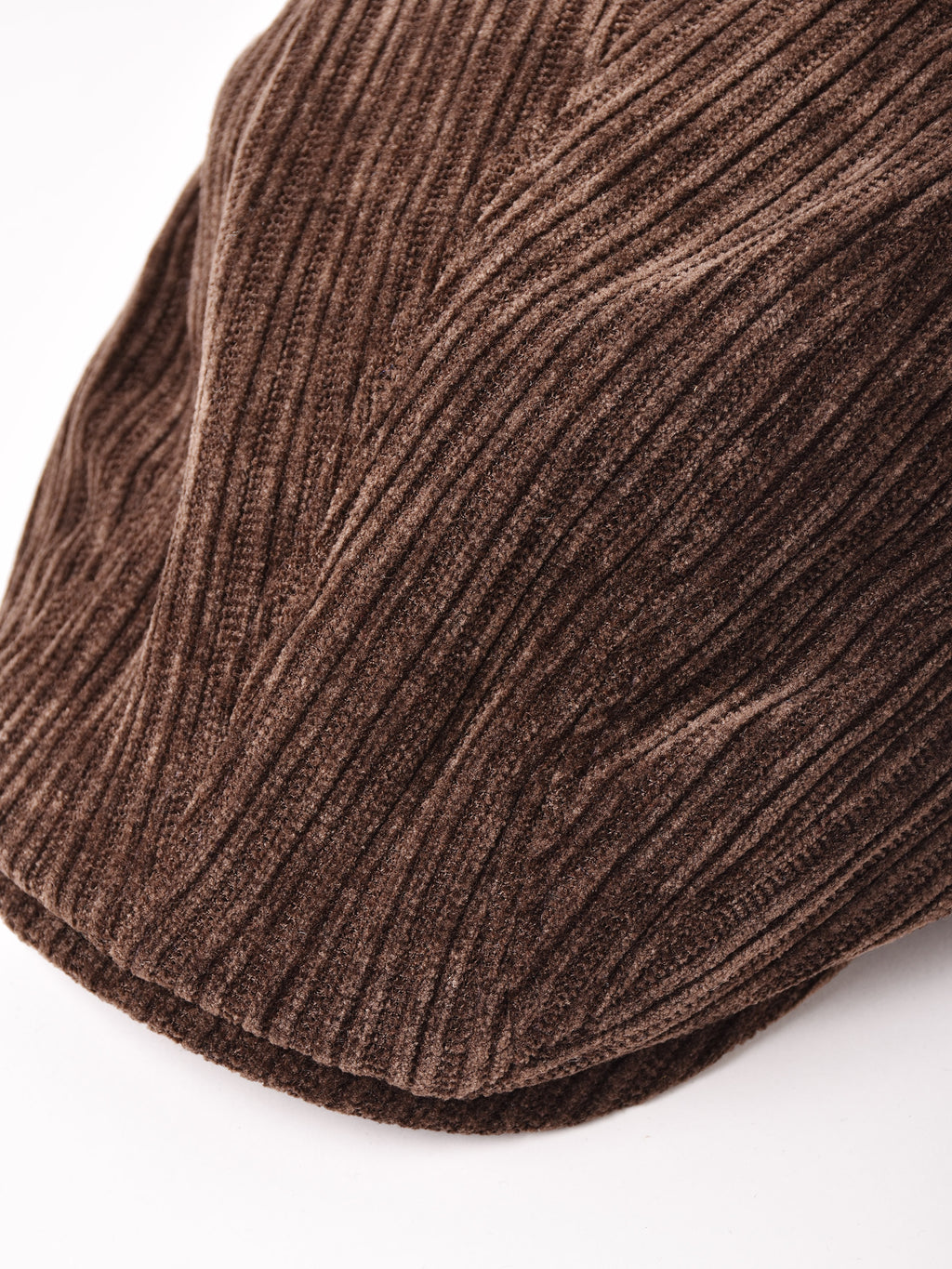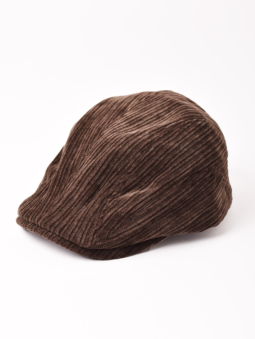 ランダムな中畝コーデュロイ生地のハンチング帽。季節感のあるテキスタイルで、秋冬コーデに馴染みやすい一点です。