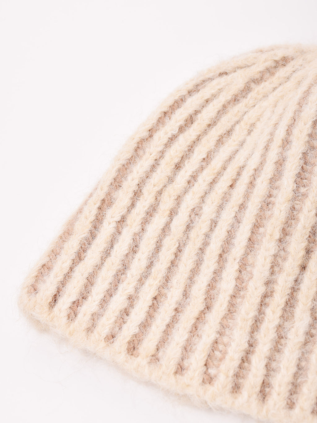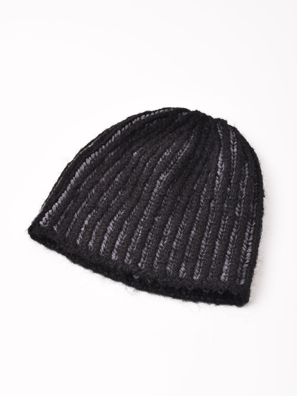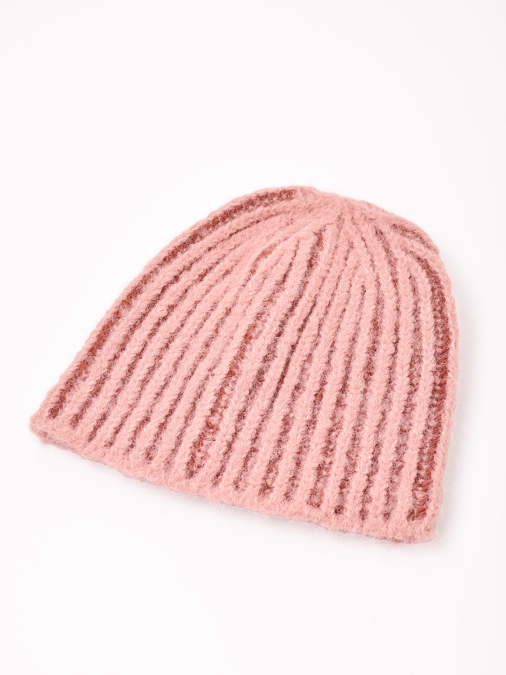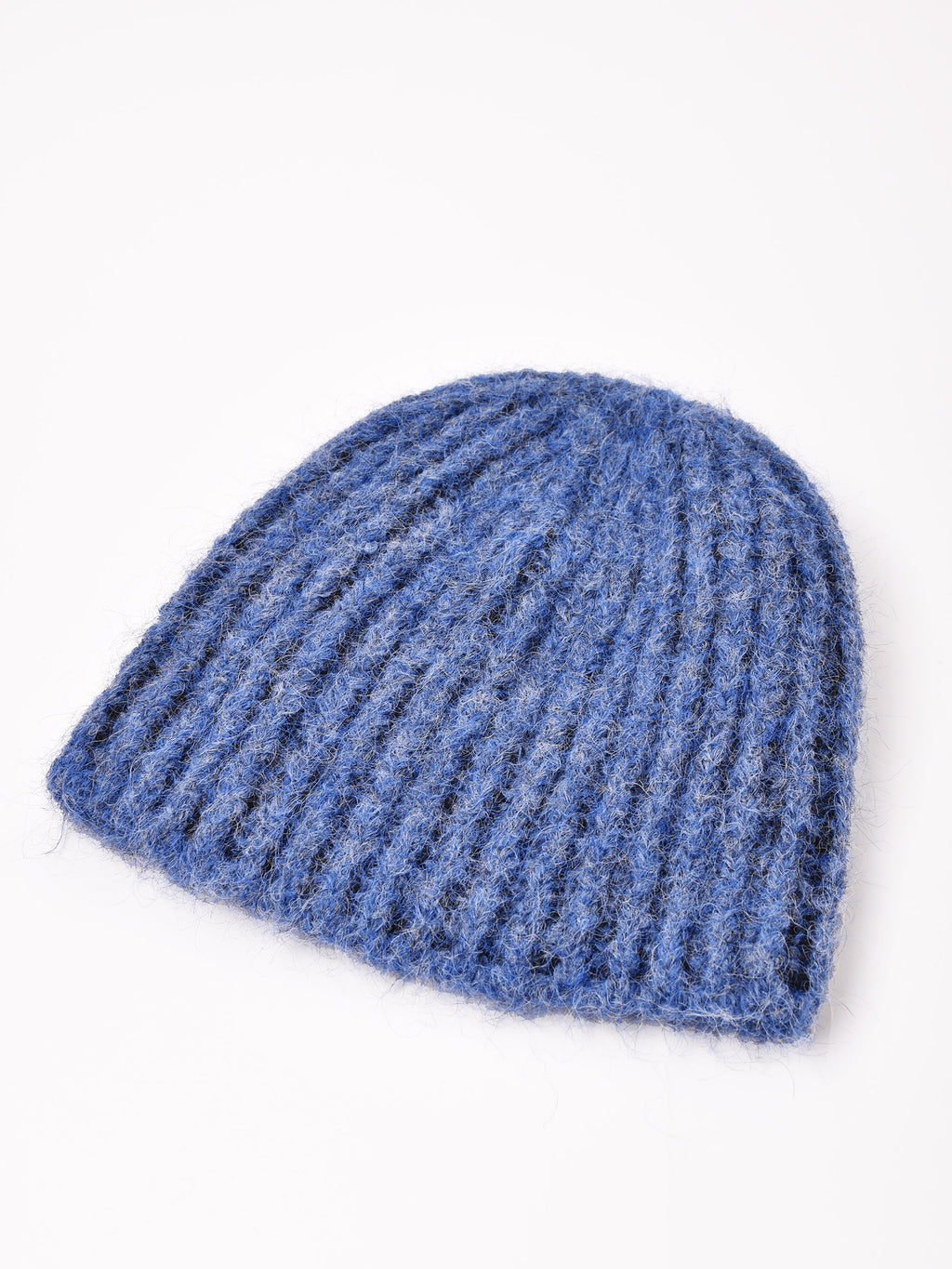 シンプルなカラーの無地ニットキャップ。程よいシャギーで秋冬らしい生地感の一点です。