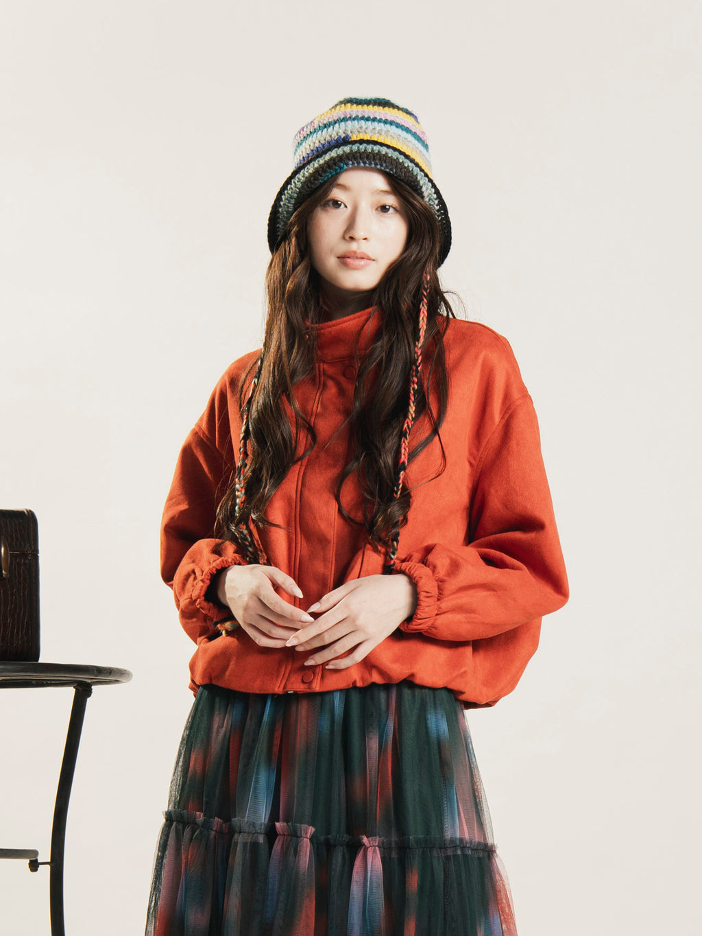 メンズライクなスタンドカラーのブルゾンジャケット。オーバーシルエットにクロップド丈で、スタイル良くこなれた雰囲気に着こなせます。裾はゴム仕様なのでフィット感も◎。