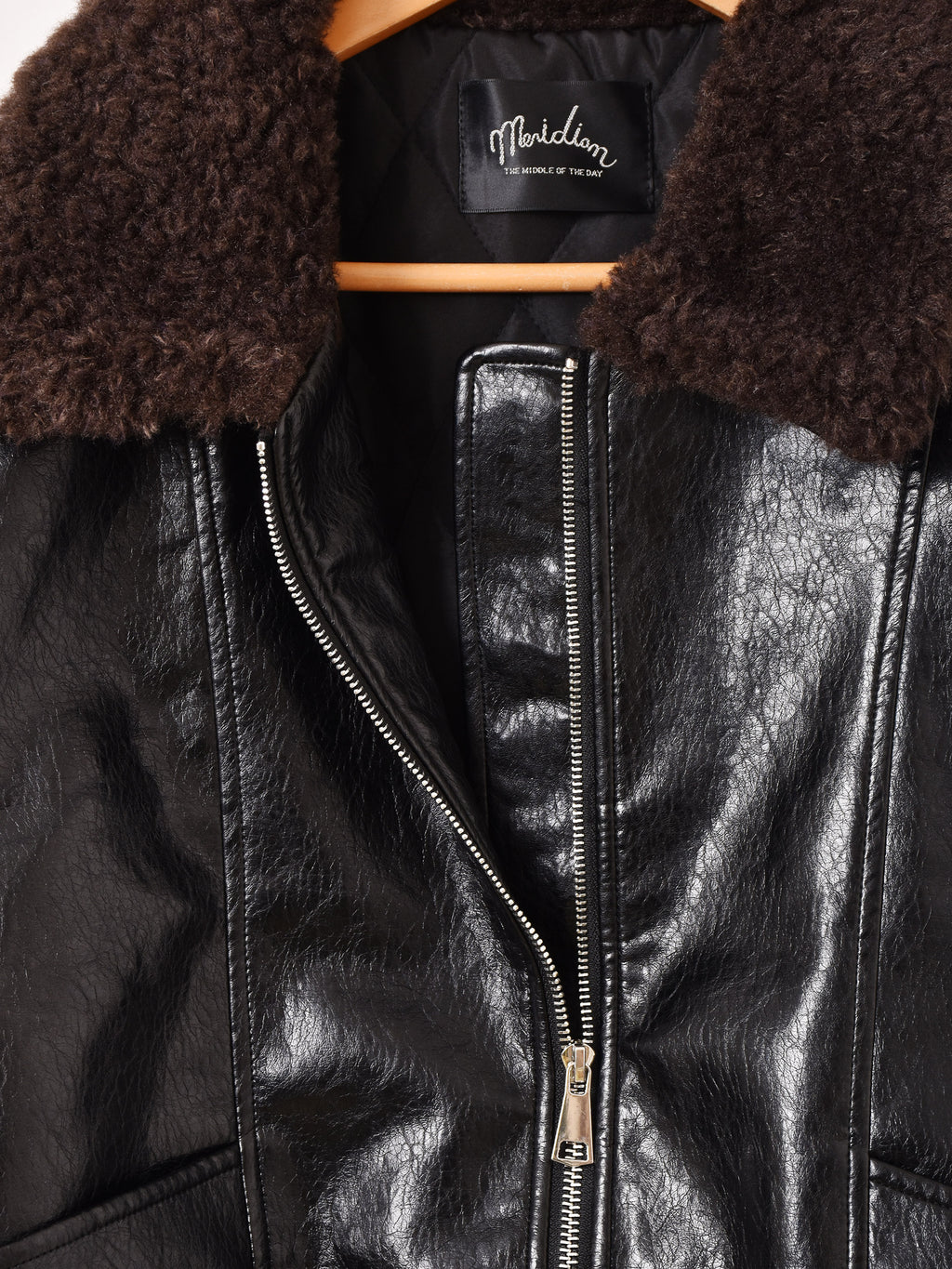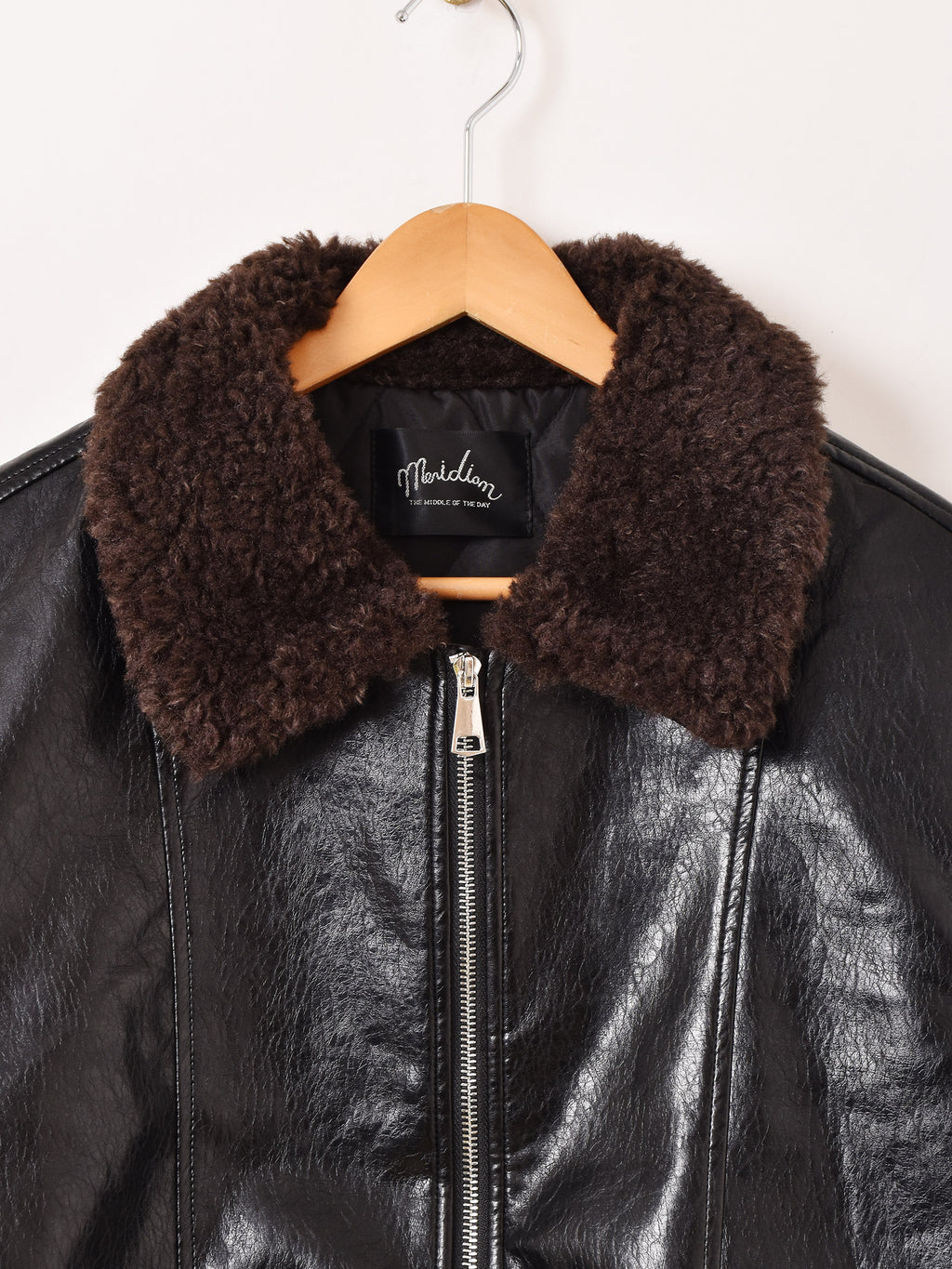 【2色展開】Meridian ボアカラー フェイクレザージャケット
