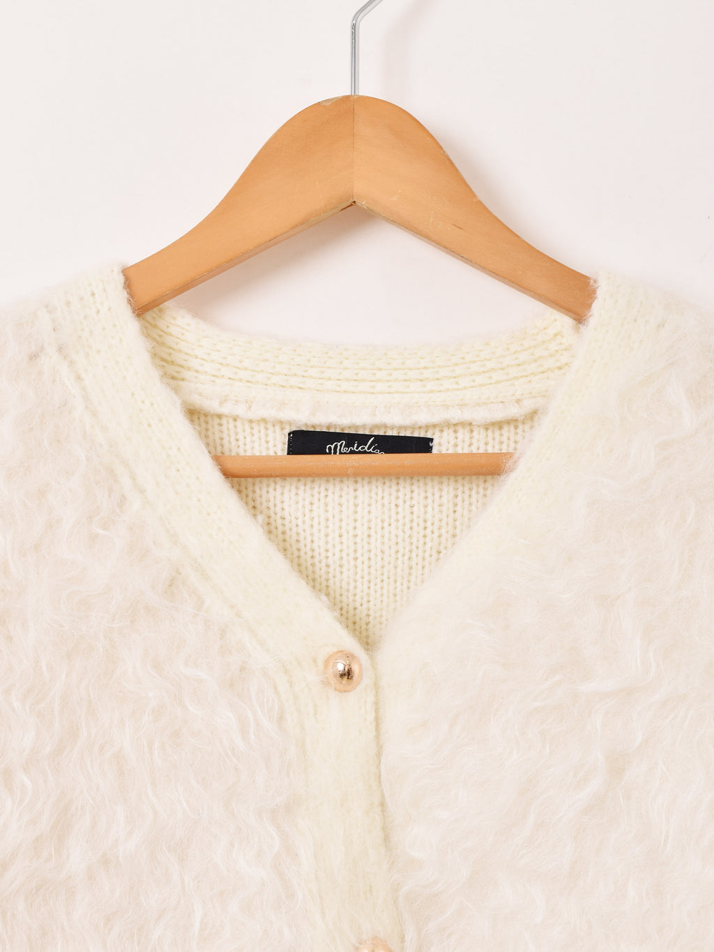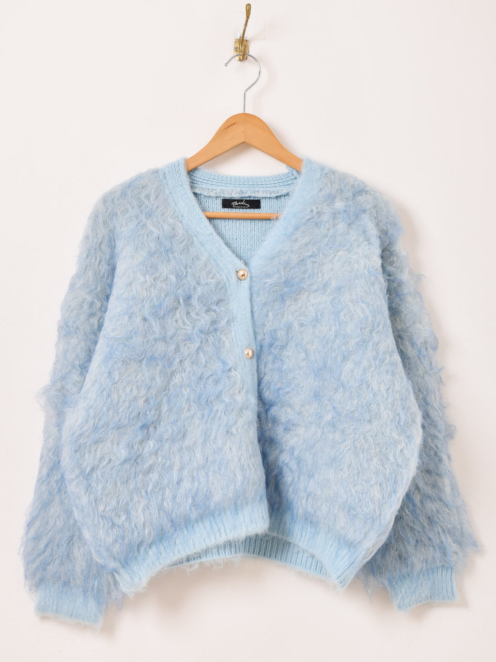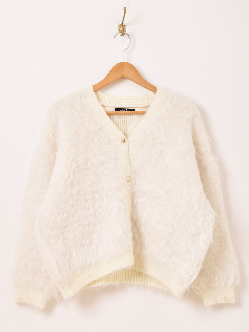 ファーのようなふわふわした毛並みがシーズンムードたっぷりのカーディガン。ボリュームのあるシルエットでこなれた雰囲気に着こなせます。しっかりと厚みのある生地感です。
