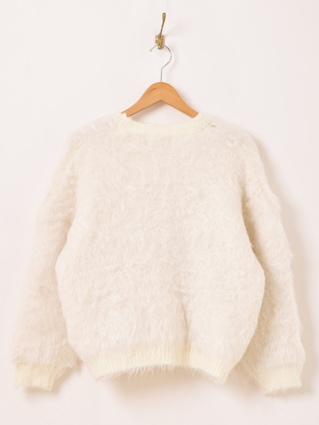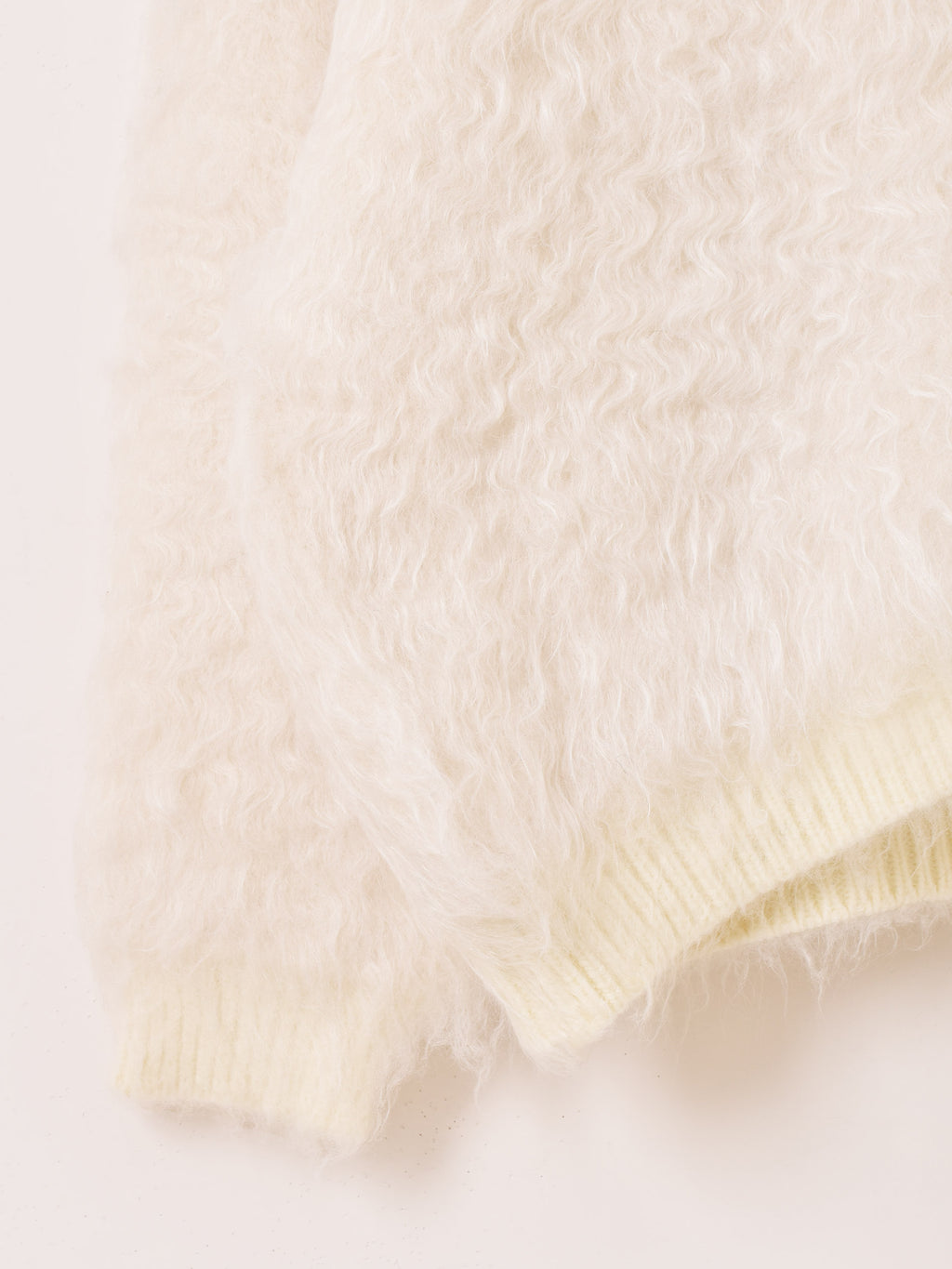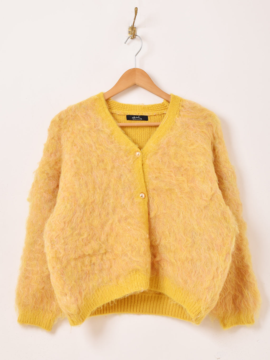 ファーのようなふわふわした毛並みがシーズンムードたっぷりのカーディガン。ボリュームのあるシルエットでこなれた雰囲気に着こなせます。しっかりと厚みのある生地感です。