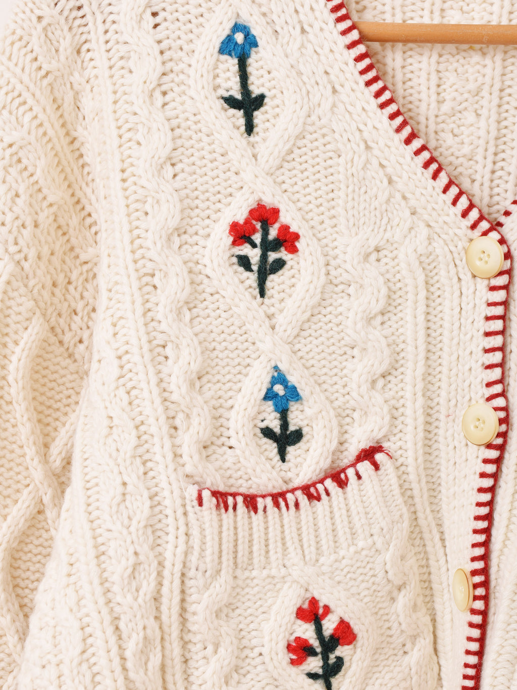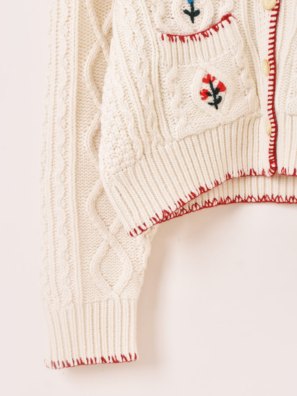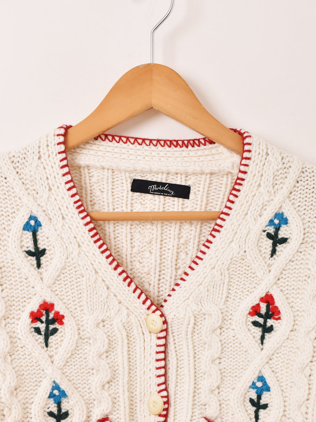 Meridian フラワー刺繍 ケーブル編み カーディガン