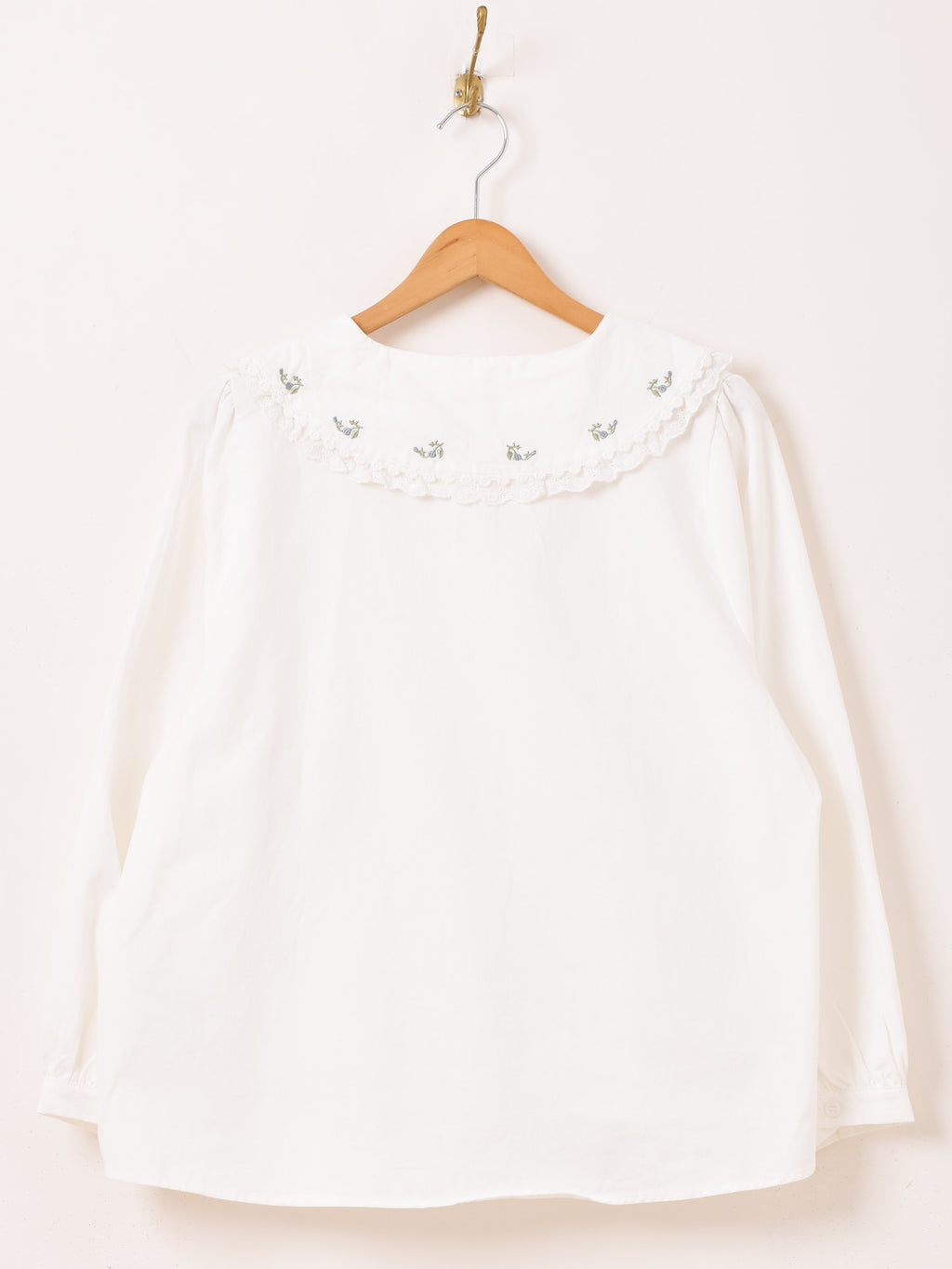 Meridian ビッグカラー 刺繍 長袖ブラウス