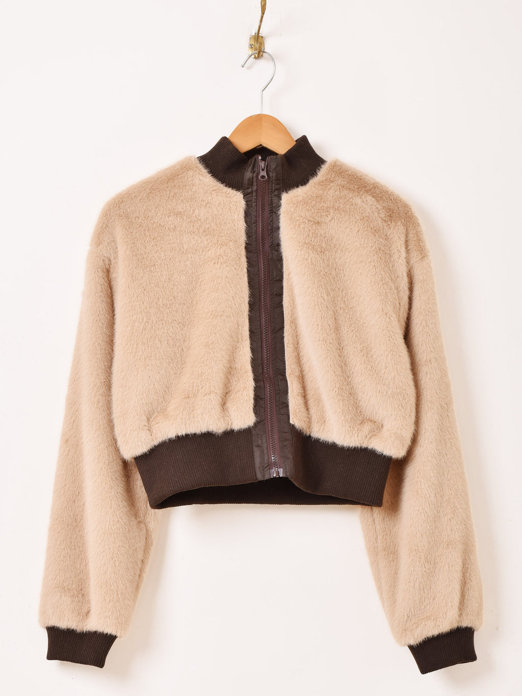 スポーティーでトレンド感たっぷりのショートブルゾン。ふんわりとした肌触りのフェイクファーが、一気にシーズンムードを高めてくれます。ボリューミーなシルエットとクロップド丈の絶妙なバランスで、どんなボトムスとも相性良く着こなせる一着です。