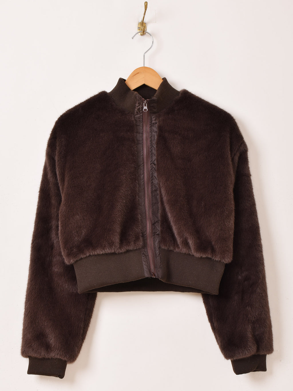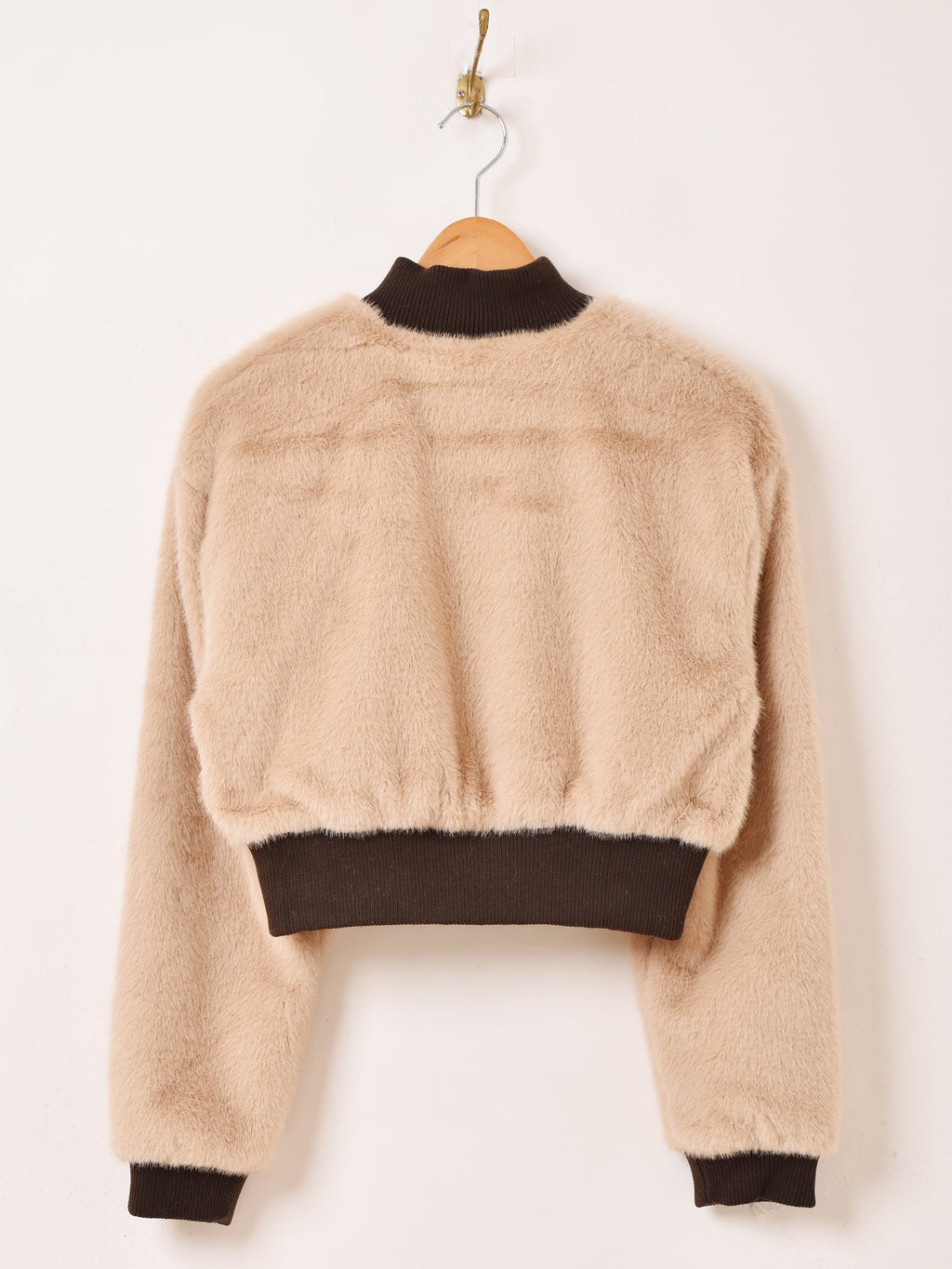 スポーティーでトレンド感たっぷりのショートブルゾン。ふんわりとした肌触りのフェイクファーが、一気にシーズンムードを高めてくれます。ボリューミーなシルエットとクロップド丈の絶妙なバランスで、どんなボトムスとも相性良く着こなせる一着です。