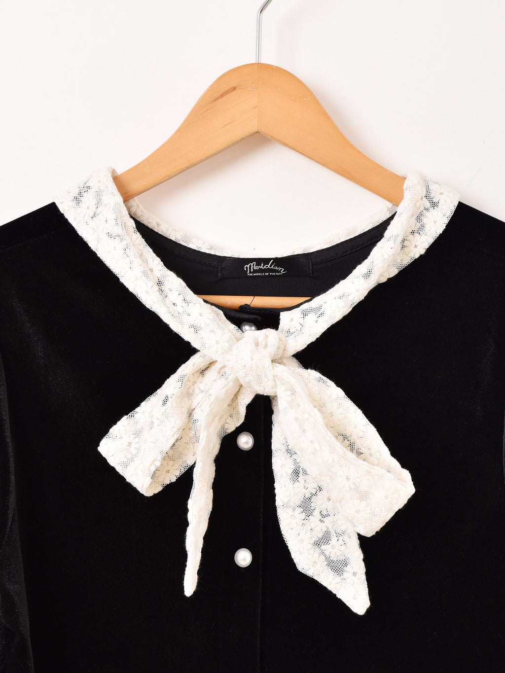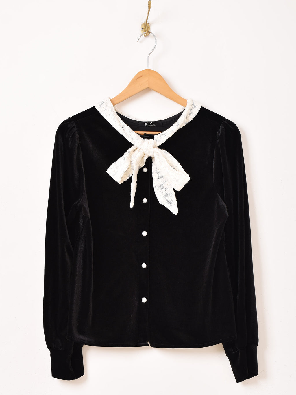 Meridian ボウタイ ベロア 長袖ブラウス