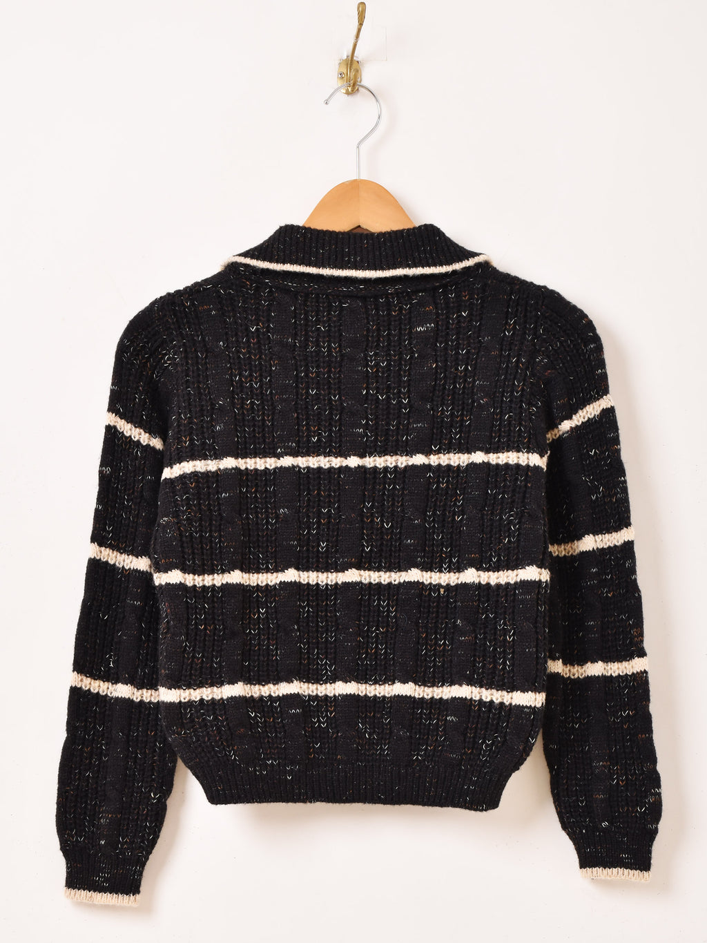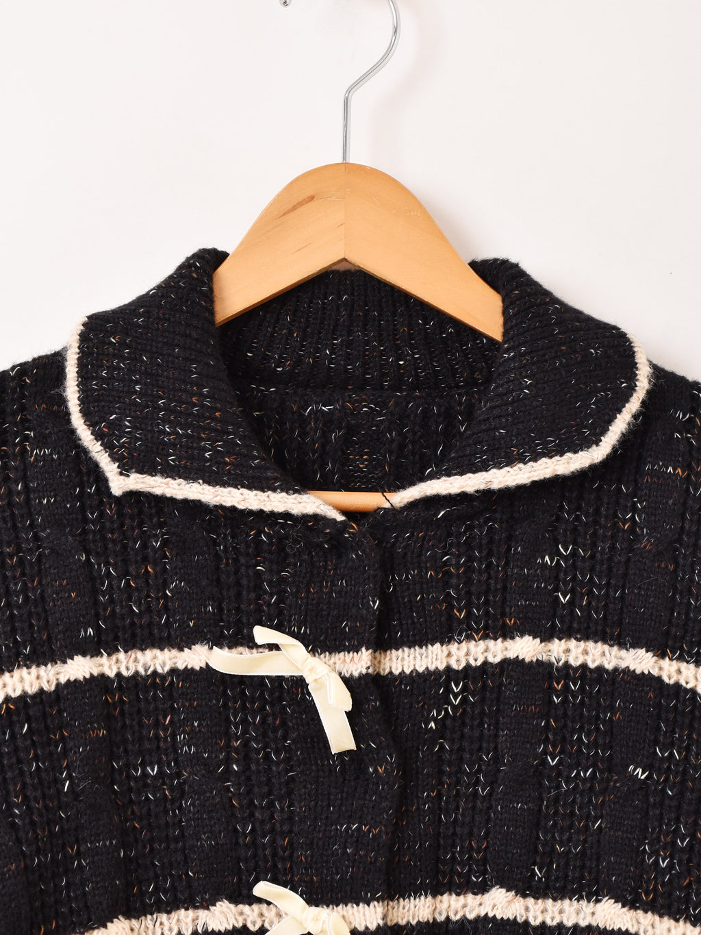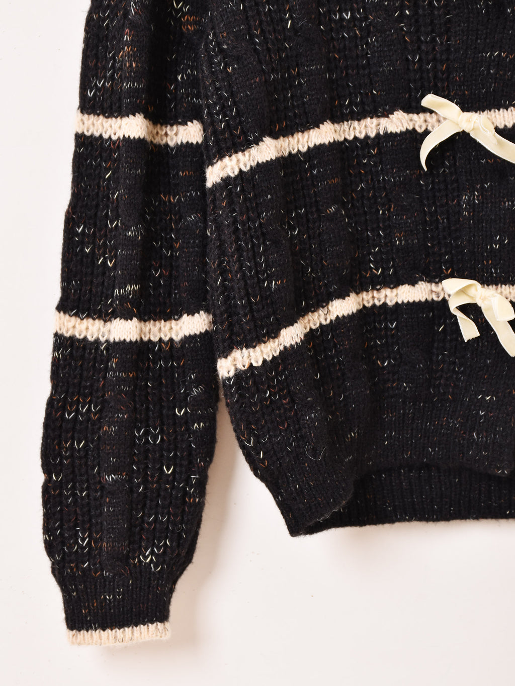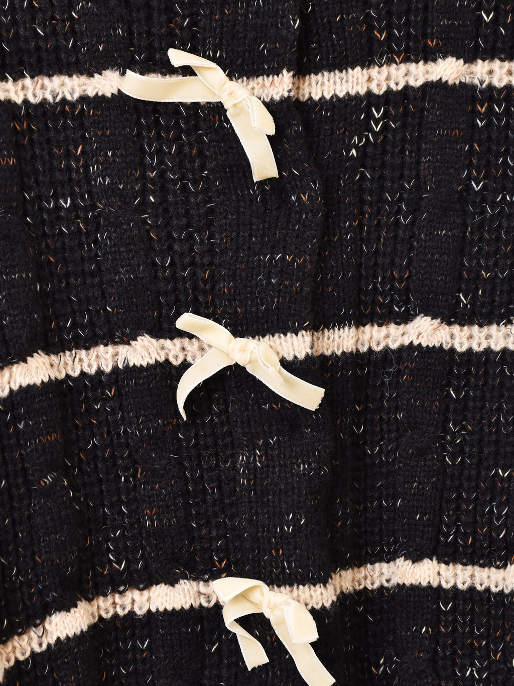 【2色展開】Meridian ボーダー柄 リボンデザイン カーディガン