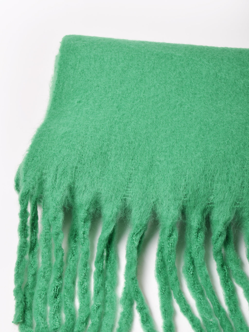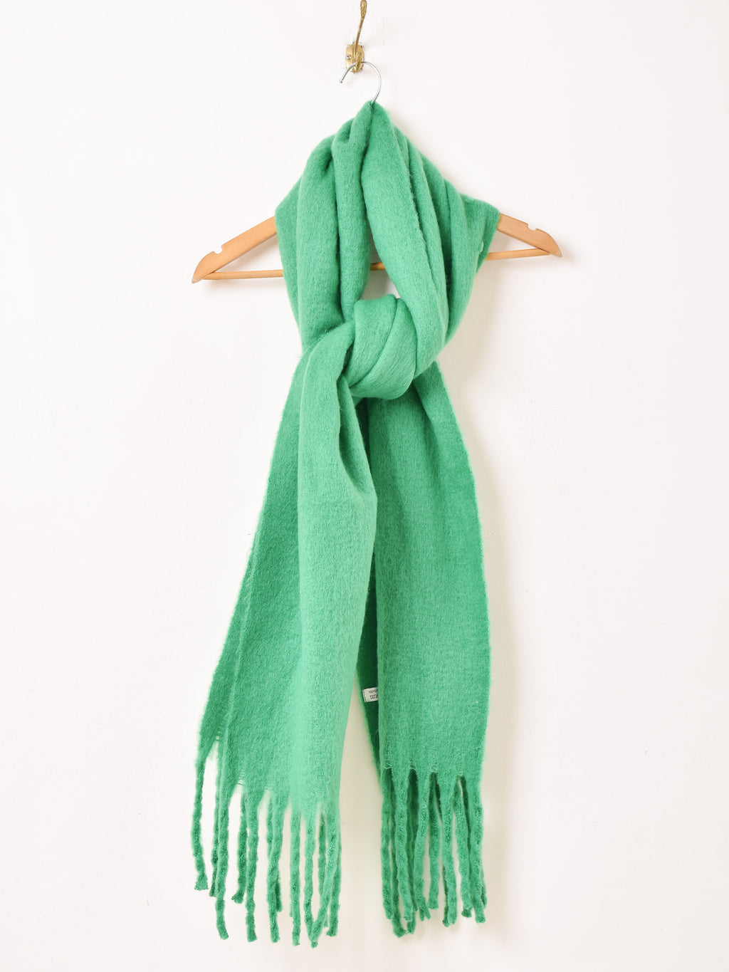 ふんわり柔らかく、肌触りのよい無地ストール。首に巻くとボリューム感が出て、華やかであたたかみも感じられる一点です。