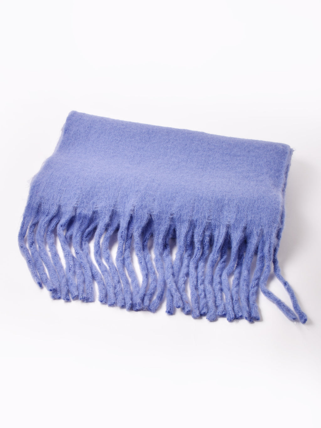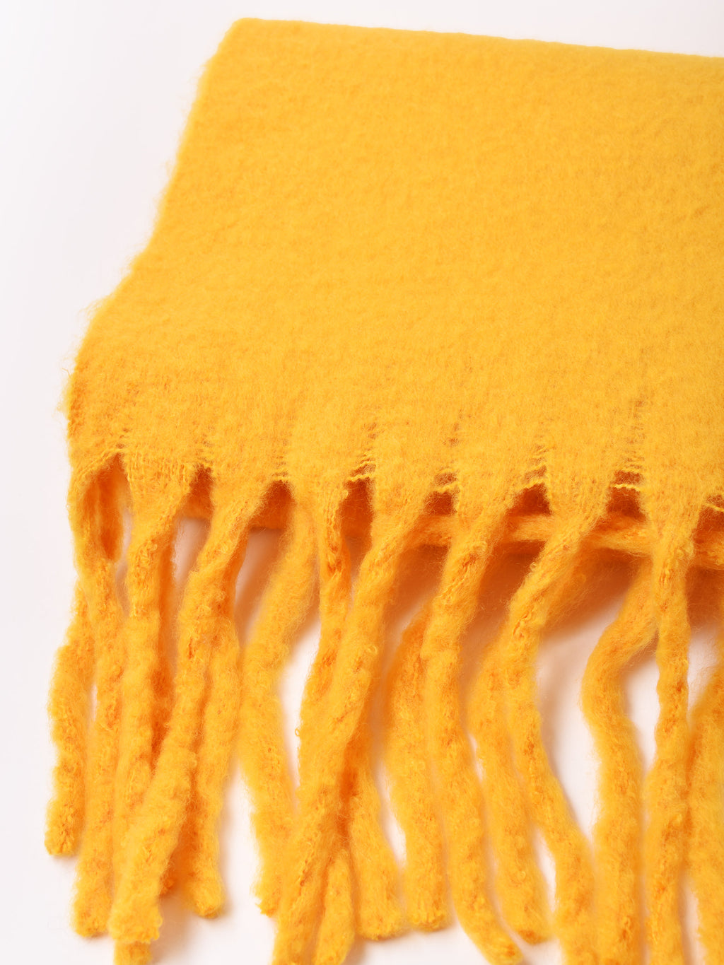 ふんわり柔らかく、肌触りのよい無地ストール。首に巻くとボリューム感が出て、華やかであたたかみも感じられる一点です。