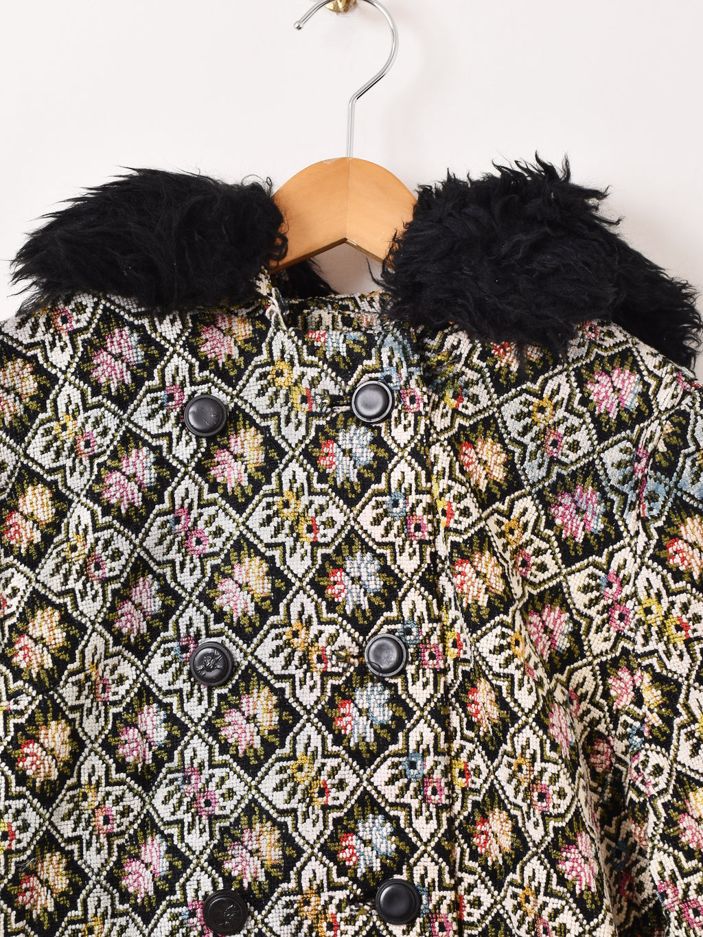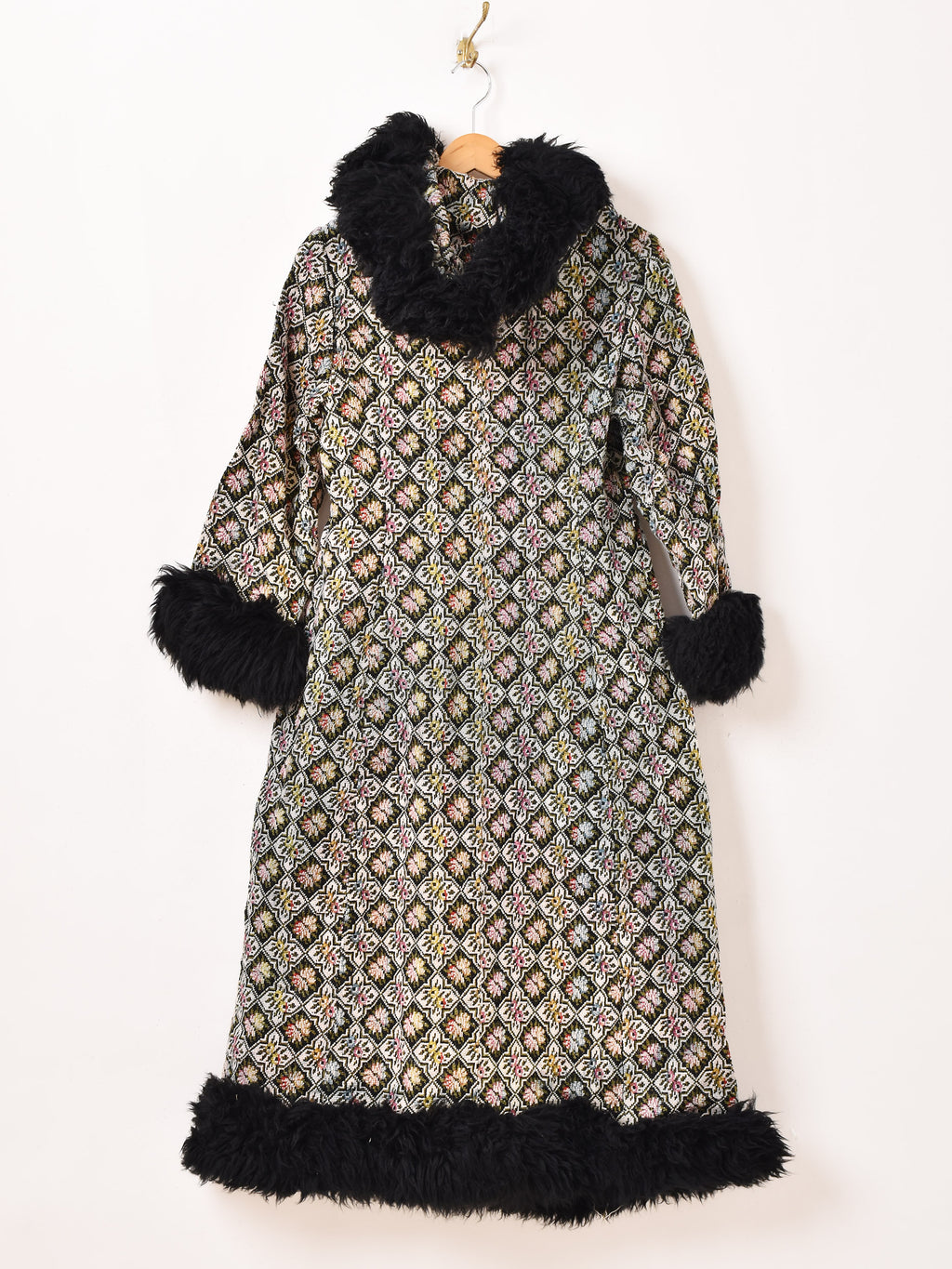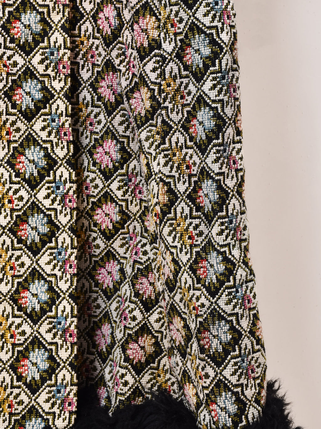 贅沢に使用されたゴブラン生地と袖や裾にあしらわれたファーがエレガントで存在感抜群のコート。