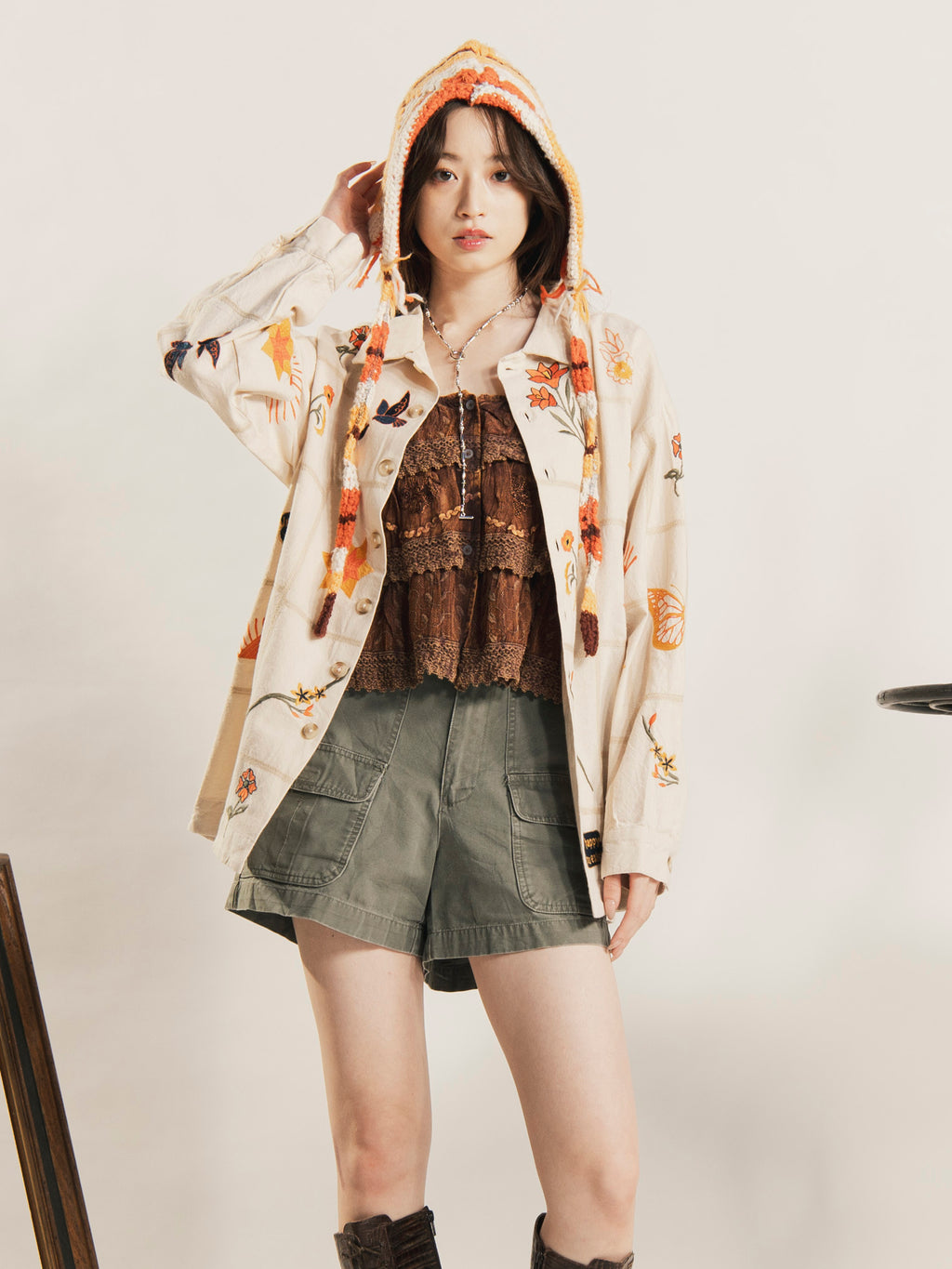 花や英字ロゴなどのレトロチックなパッチワーク風刺繍をあしらったジャケット。風合いの良いコットン素材で、シャツ感覚でも着られます。ややオーバーなサイズ感がルーズな着こなしに◎。ジャケットとしてもシャツとしても着回せて、コーディネートの主役になる一着です。