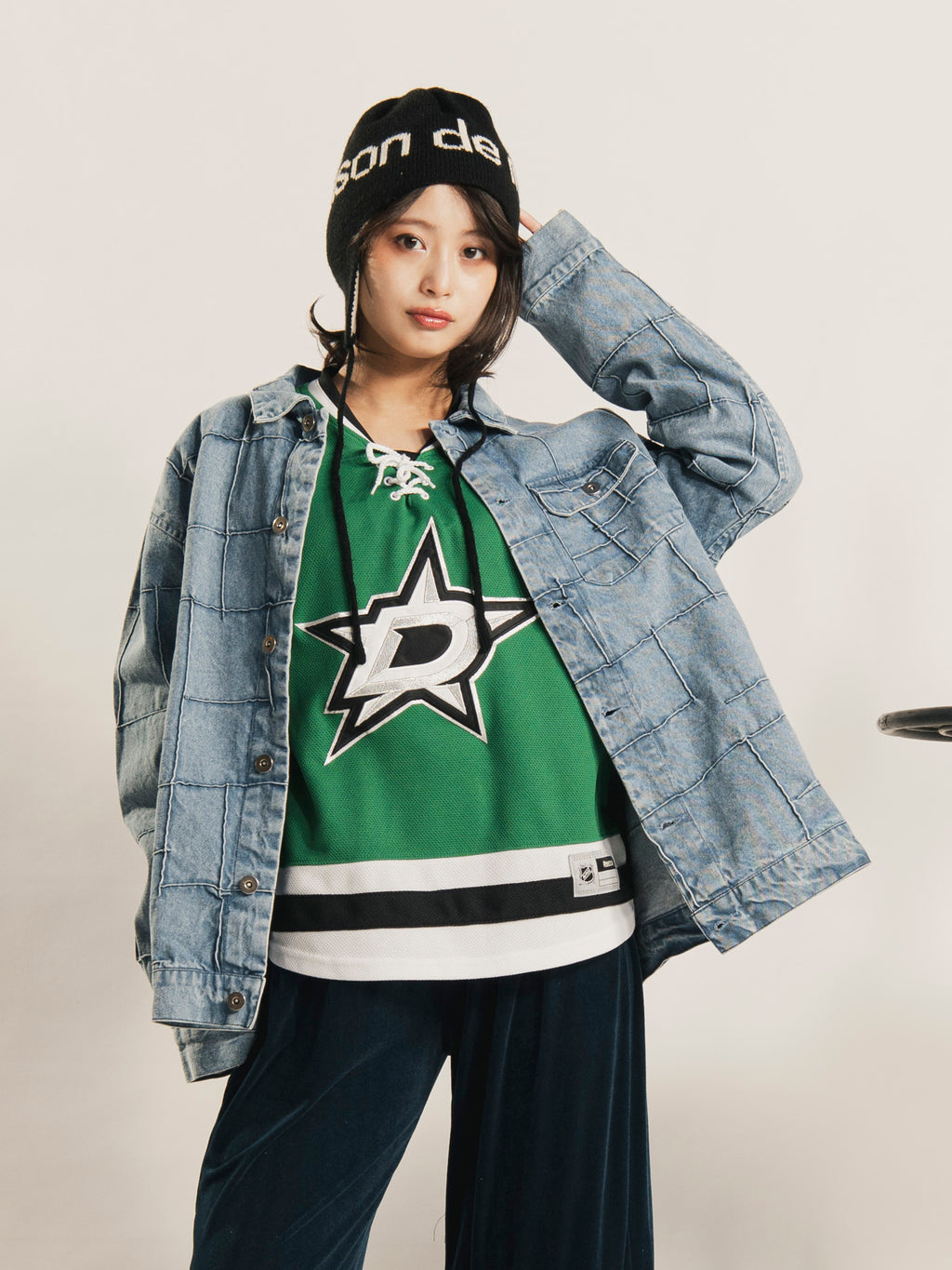 【2色展開】Emerald Motel パッチワーク風 デニムジャケット