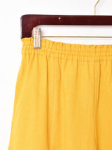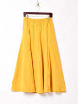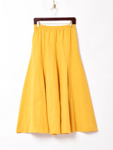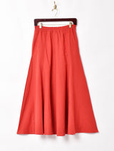 コーディネートの差し色にぴったりな鮮やかなカラーに、パネルのデザインがさり気なく効いたフレアスカート。ウエストゴム仕様で裏地付き。風合いのあるコットンリネン生地です。