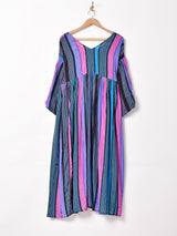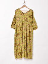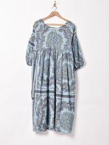 ボリューミーなバルーンスリーブが目を惹く、7分袖ワンピース。存在感のあるパターンも魅力のひとつ。動きの出やすいさらっとしたレーヨン生地で、軽やかな着心地の一枚です。