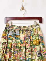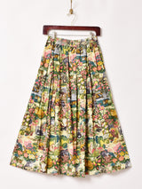 庭にたくさんの猫たちが描かれ、とても賑やかで可愛らしい総柄のロングスカート。裏地はありませんが、しっかりとしたコットン素材です。